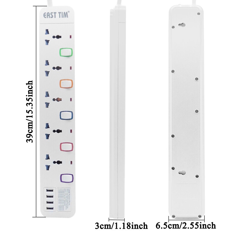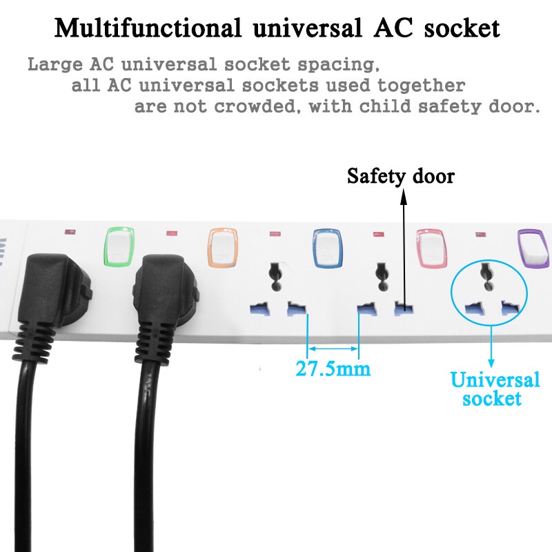 USB Power Strip 3/5 Ways Outlet Electrical Socket Plug with 4USB Individual Switched Extension Cord Socket US Plug