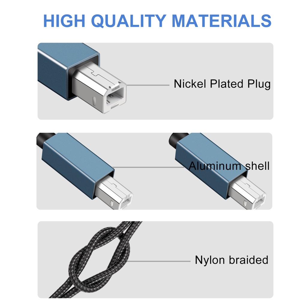 USB Printer Cable 2M USB 2.0 Type A Male to B Male cable 1M/2M/3M Nylon Braided Scanner Cord Printer Cord