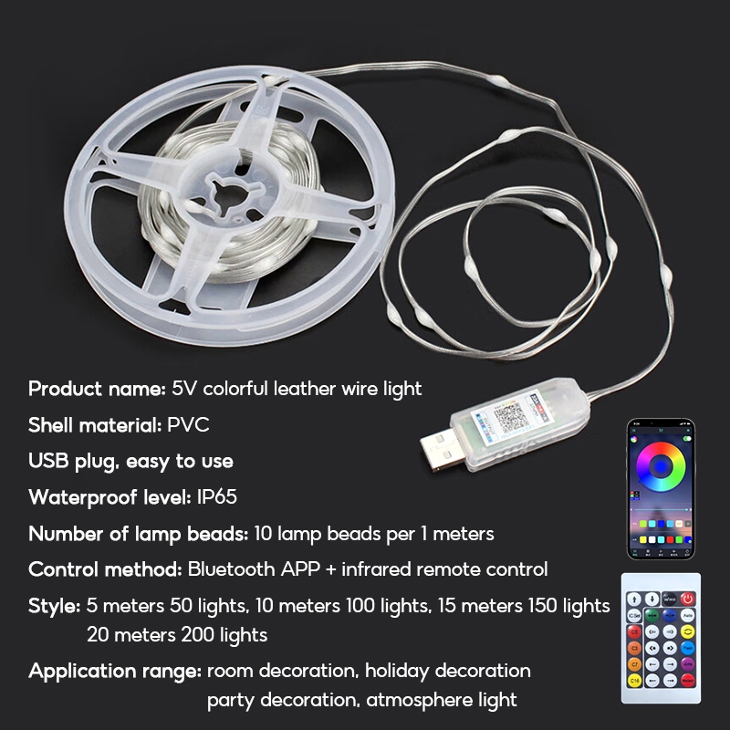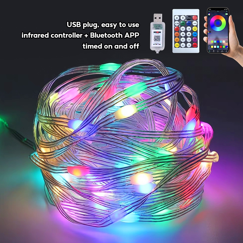 USB RGB LED String Lights Music Sync Remote Bluetooth APP Fairy Light Outdoor For Wedding/Party