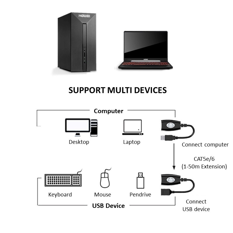 USB RJ45 Extender Up to 150FT on CAT5/CAT5E/CAT6 support pendrive keyboard mouse printer