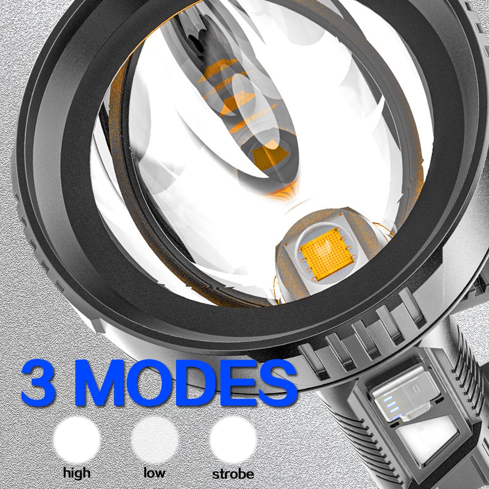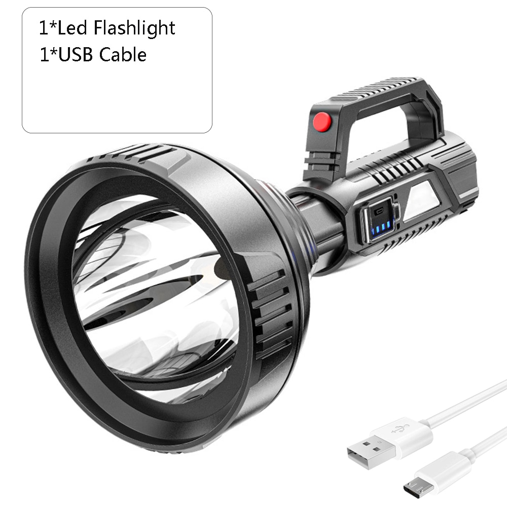 USB Rechargeable Searchlight Big Beam Long-Range Flashlight Waterproof Led Torch Outdoor Patrol Flashlight Lantern
