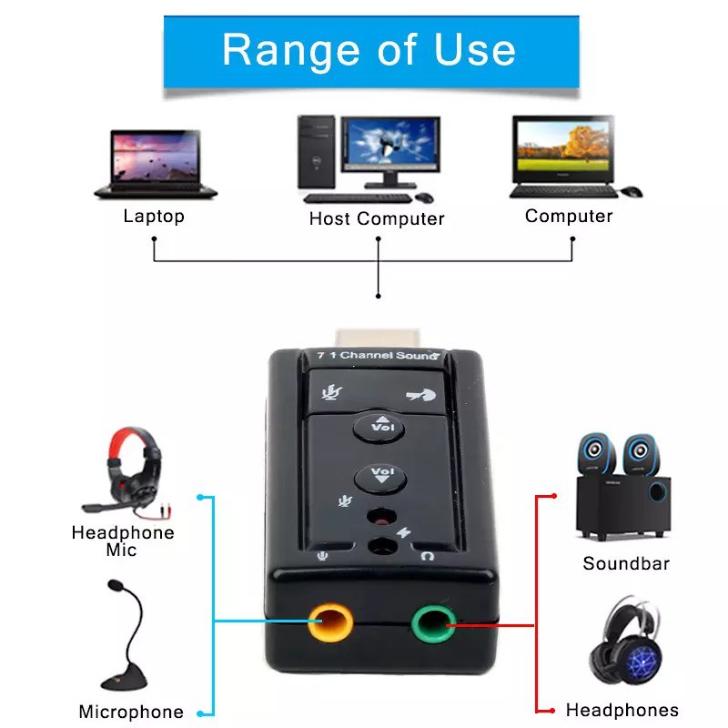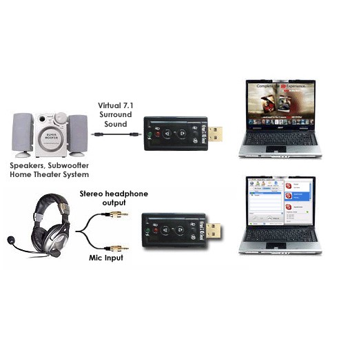 USB 2.0 3D Virtual 12Mbps External 7.1 Channel For PC Laptop