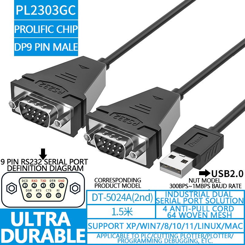 DTECH USB2.0 To RS232 Serial Port Cable DB9 Pin Industrial Grade Dual Serial Port/Four Serial Port