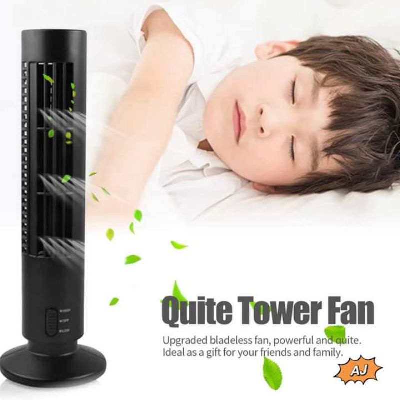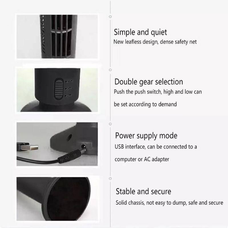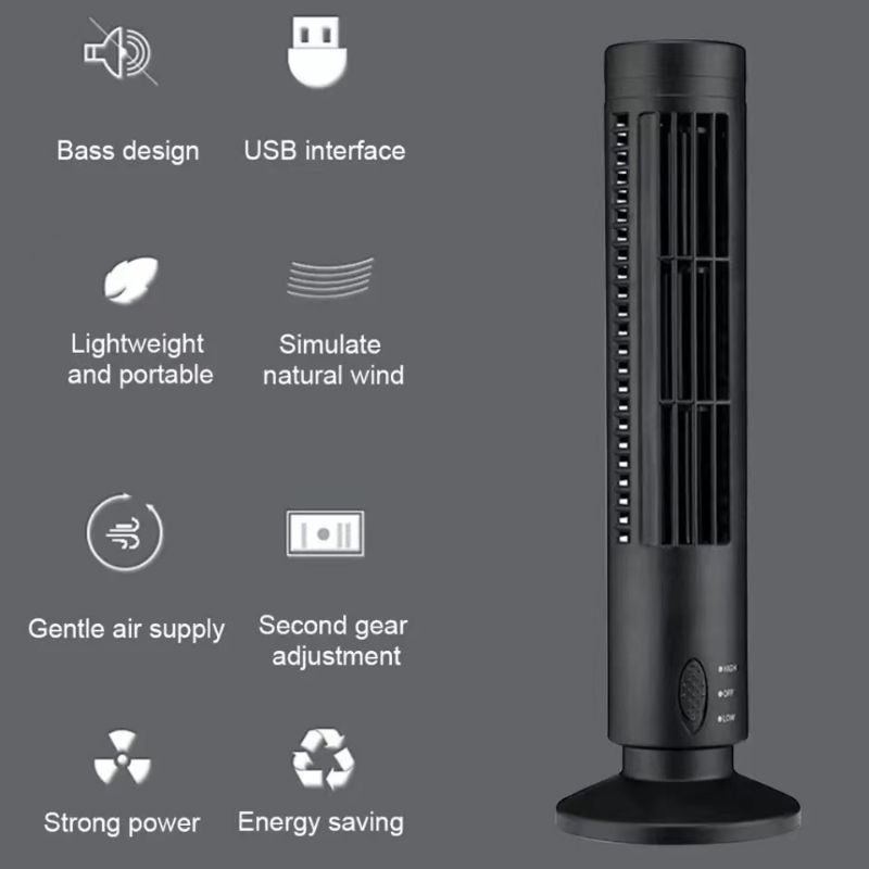 USB Tower Fan 2 Level Adjustable Speed Mini Vertical Bladeless Fan Quiet Summer Cooling