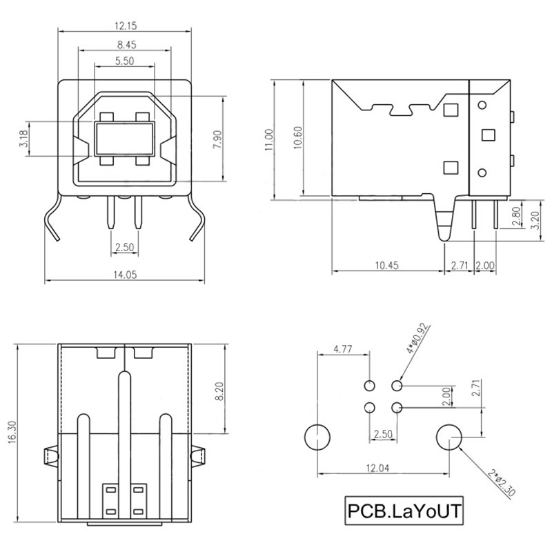 USB Type B Female Connector Printer Port