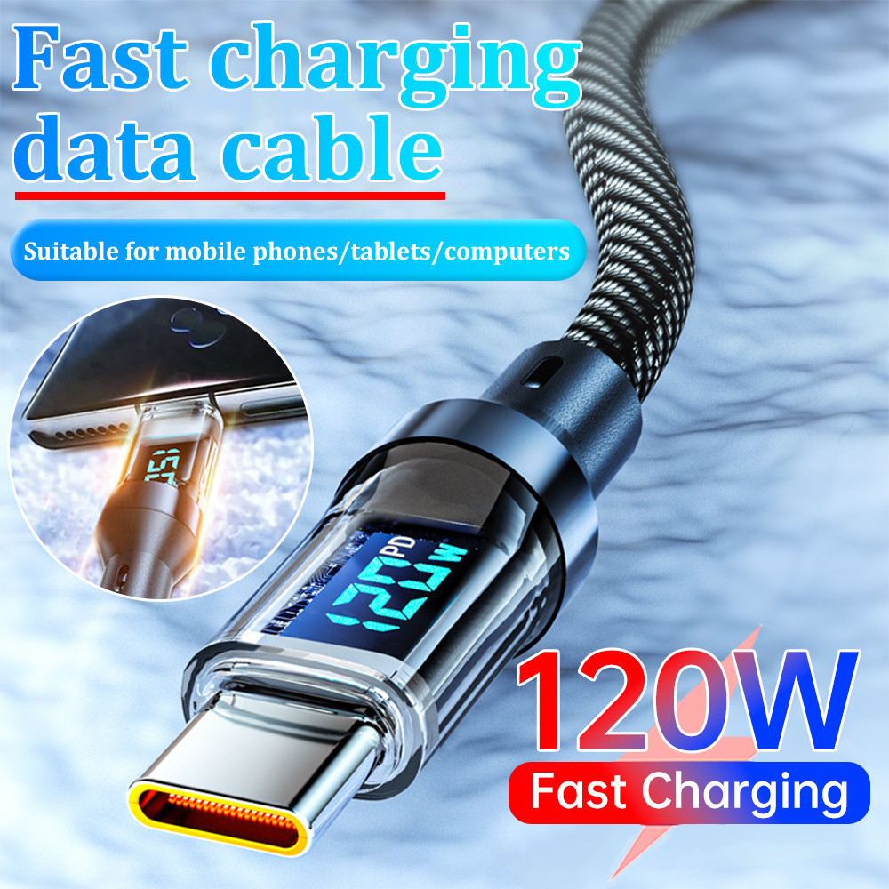 USB Type C Charge Cable 120W/5A Fast Charging USB-A to USB-C Cord with Power Digital Display