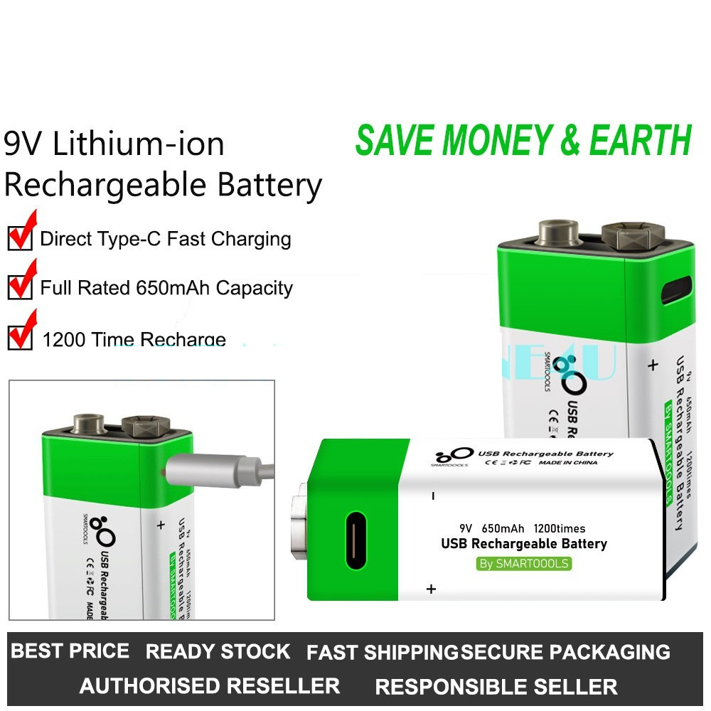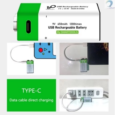 USB Type-C Direct Fast Charge 650mAh Lithium-ion 9V Rechargeable Battery