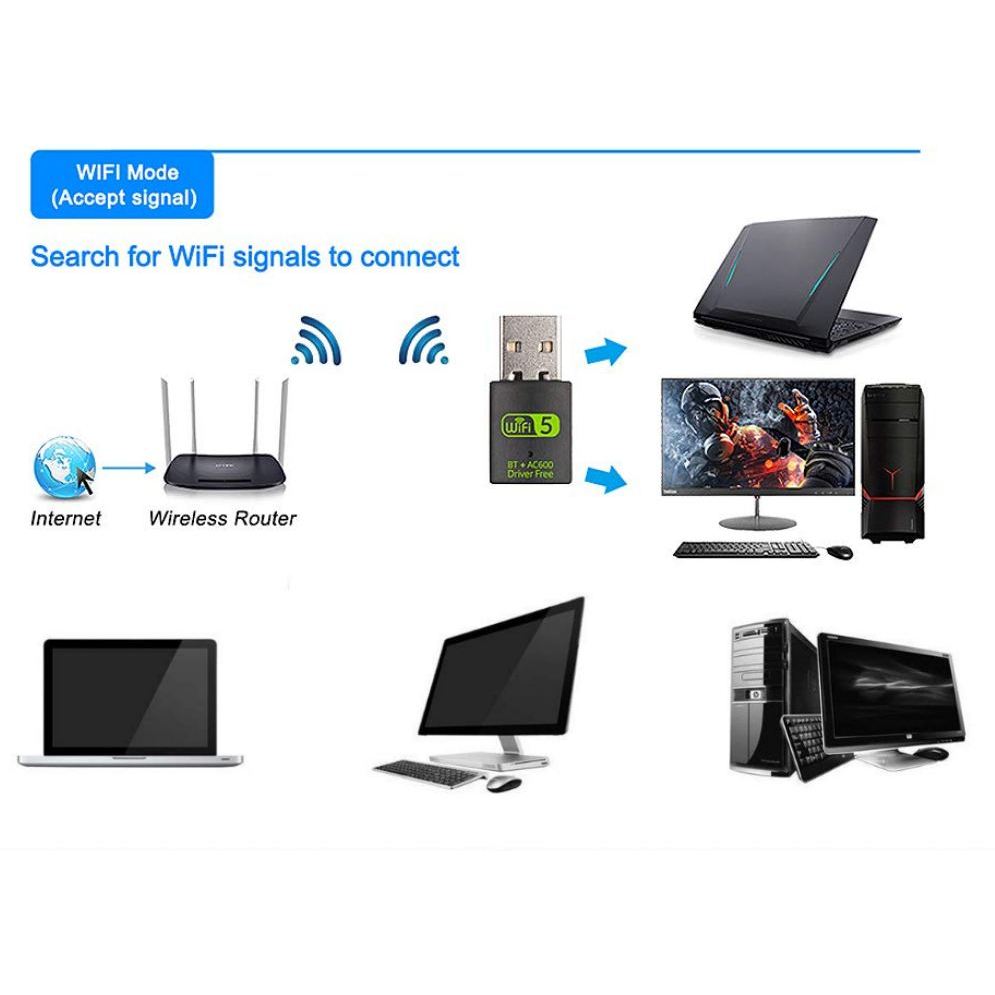 USB Wifi Dongle Bluetooth,Wireless WiFi Receiver Bluetooth Adapter 2.4G/5GHz Pc
