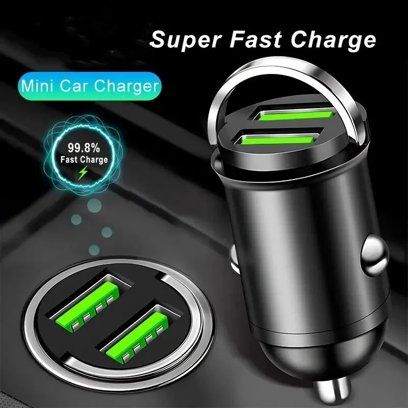 USB car charger 100W dual port mini fast charging 2-port ultra fast charging car USB charger