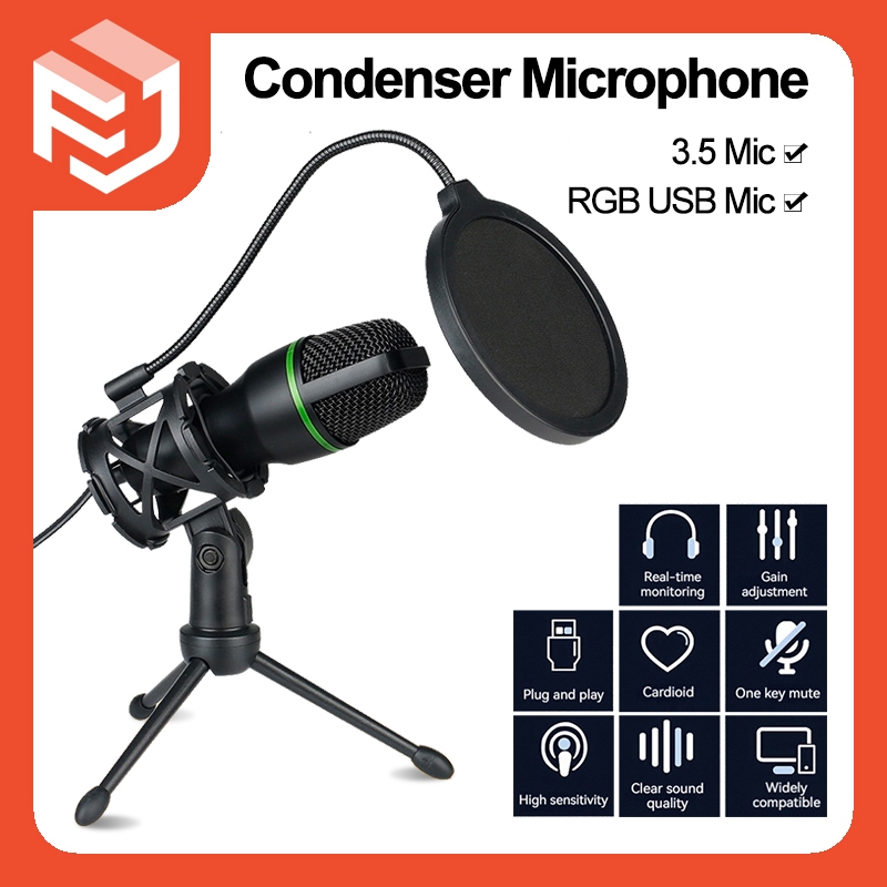 USB condenser microphone for computer live broadcast karaoke microphone game video conferencing noise reduction microphone