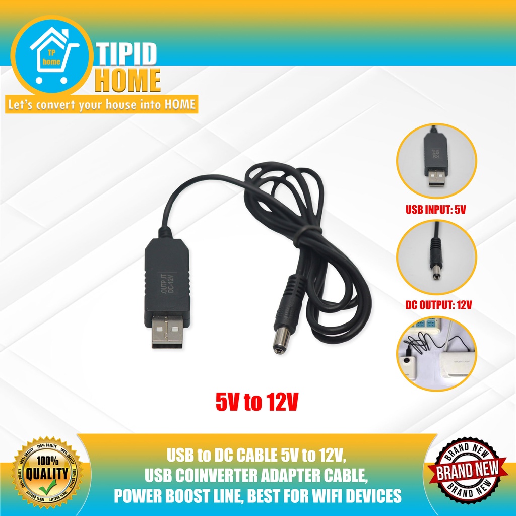 USB to DC CABLE 5V to 12V, USB COINVERTER ADAPTER CABLE, POWER BOOST LINE, BEST FOR WIFI DEVICES