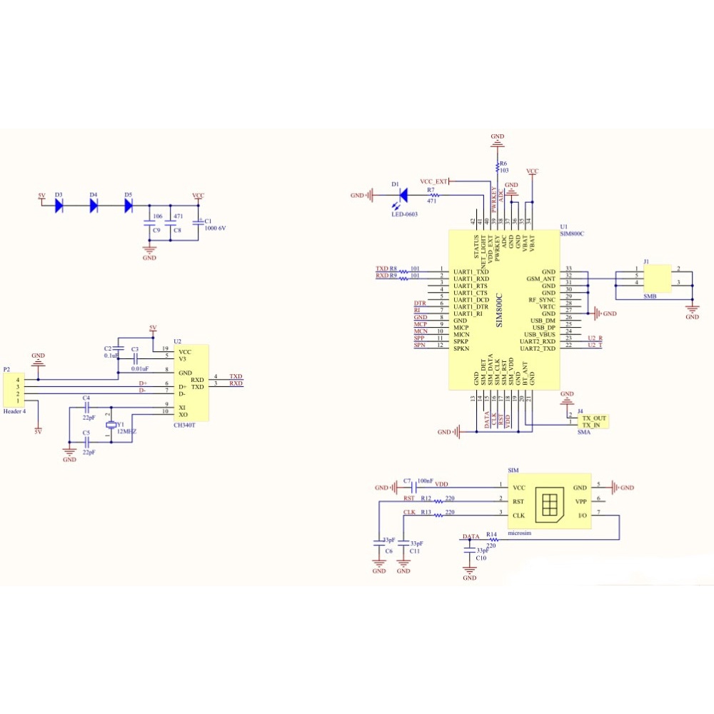 USB to GSM Module Quad-band GSM GPRS SIM800C SIM800 Module For Wireless BLE Module SMS Messaging With Antenna