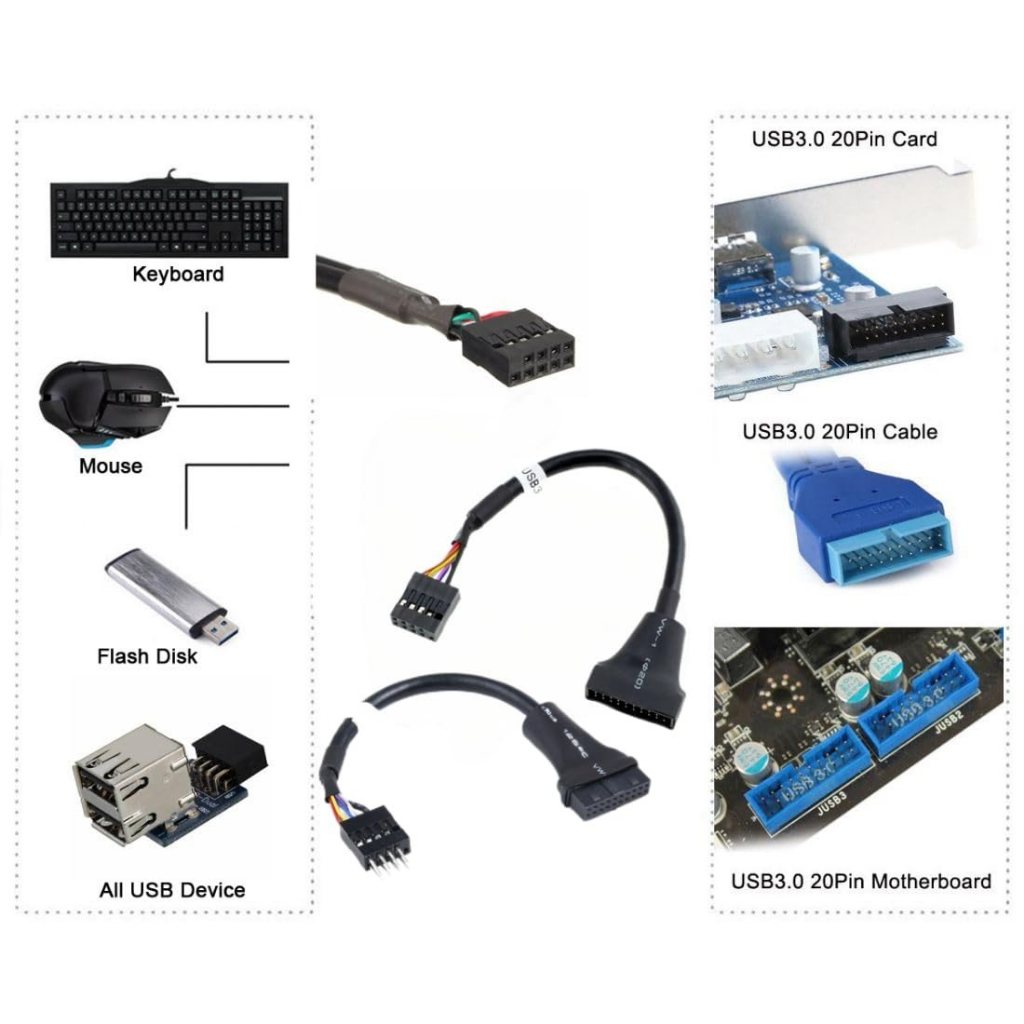 USB3.0 to USB2.0 Adapter Cable 20Pin Female to 9Pin Male Motherboard USB3.0 Interface to Front Panel