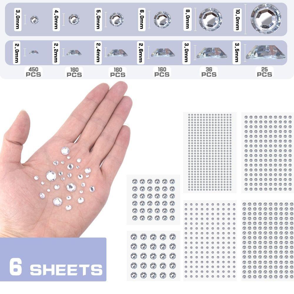 USNOW Face Rhinestone Crystal Stickers, Self Adhesive Fashion Eyebrow Eyeshadow Stickers, Children's Toys Shiny Flatback 3-12MM 3D Diamond Gems Decals Beauty