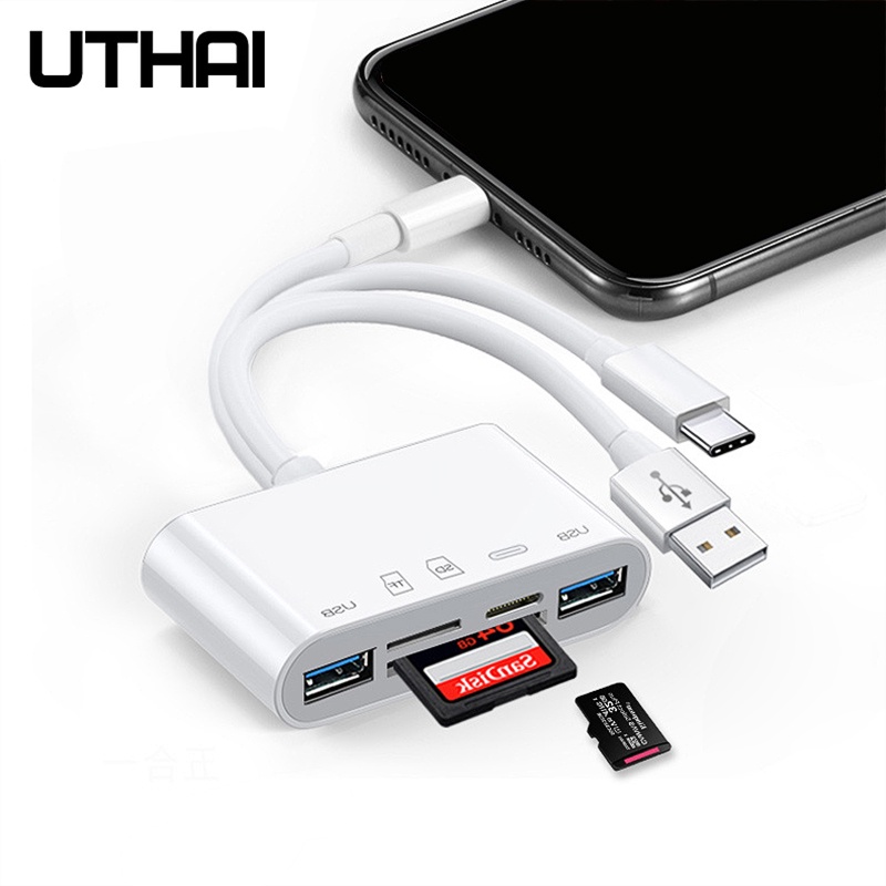 UTHAI C75 New 5in1 USB3.0 Adapter For iPhone Android Tablet SD/TF Card Reader 500mA Support IOS Type-C Lightning USB Hub