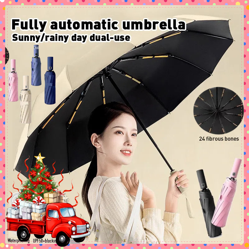 UV Automatic Umbrella Korean 24 Ribs Storm Resistant Large Umbrella for Sun Rain Folding Umbrella