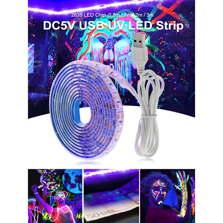 UV LED Strip Light 5V DC 2835 0.5M 1M 2M Waterproof Purple Ribbon Ultraviolet USB Rope Tape for DJ Fluorescence