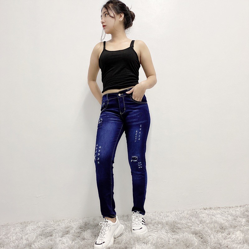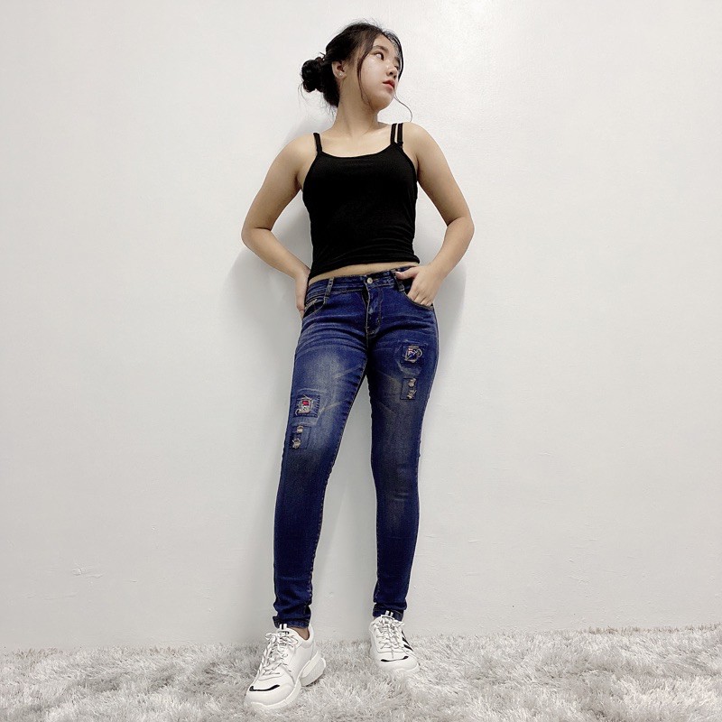 UV-Y jeans tattered and patches skinny jeans for women 8630