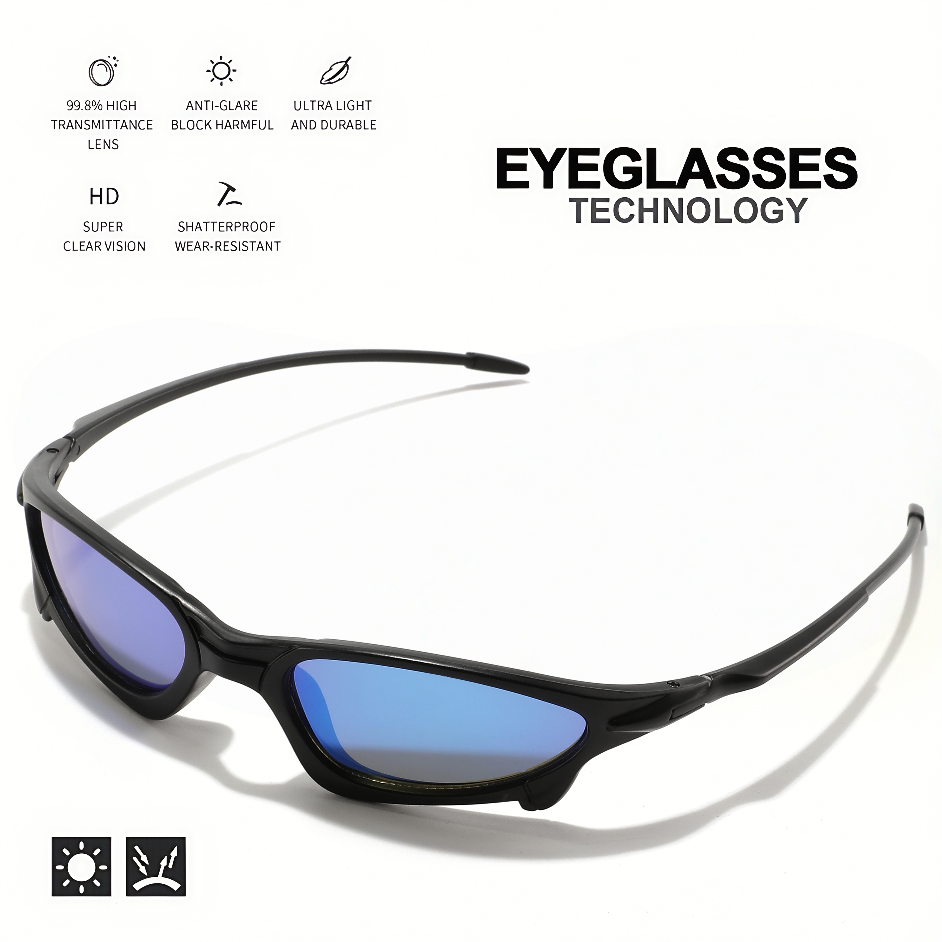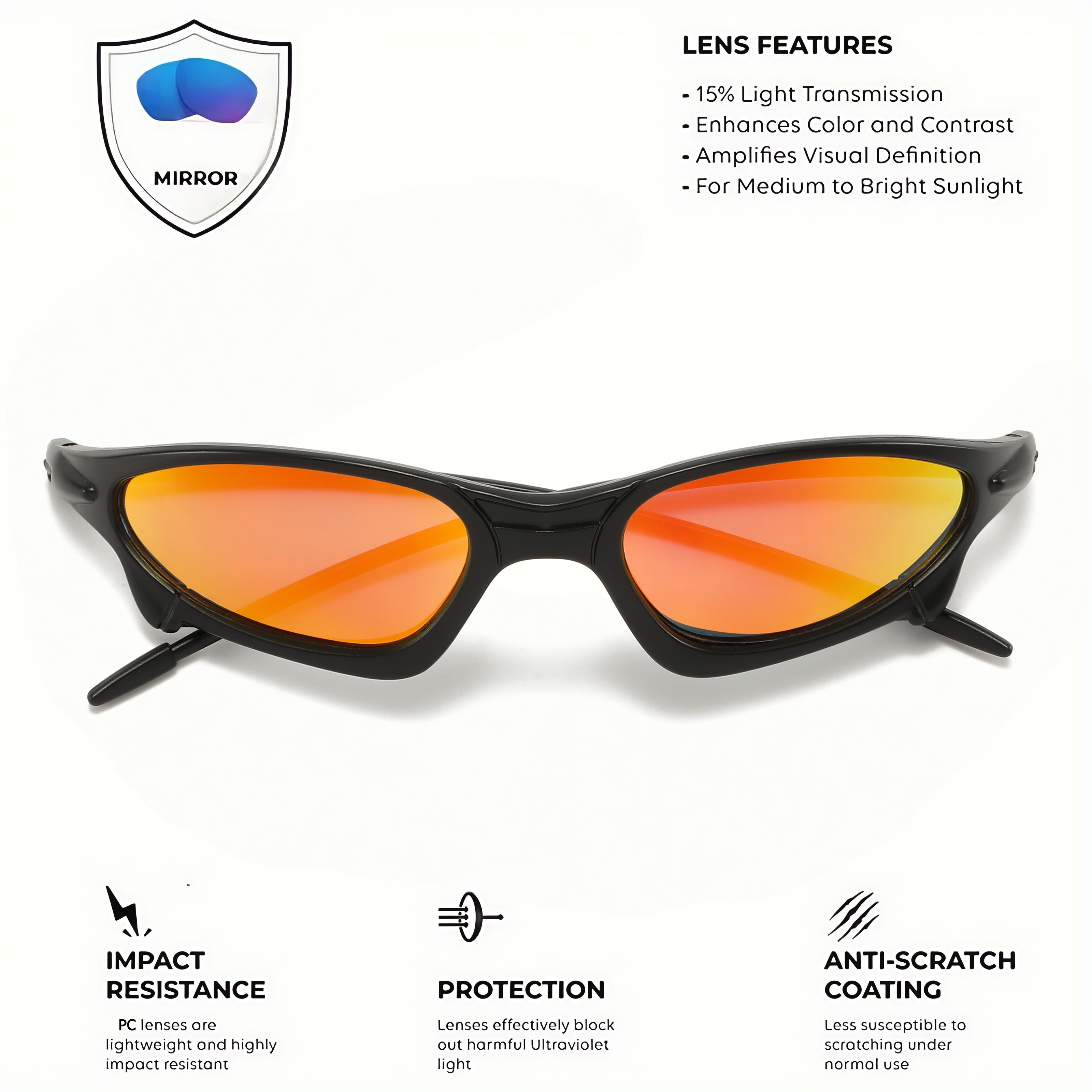 UV400 Cycling Sunglasses, Small Wraparound Design, Colorful Sporty Look