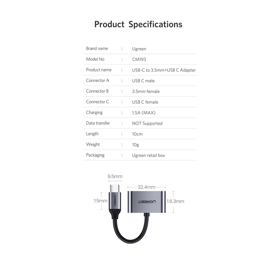 Ugreen Cm193 50596 Usb-C To 3.5mm Aux Plus Female Adapter