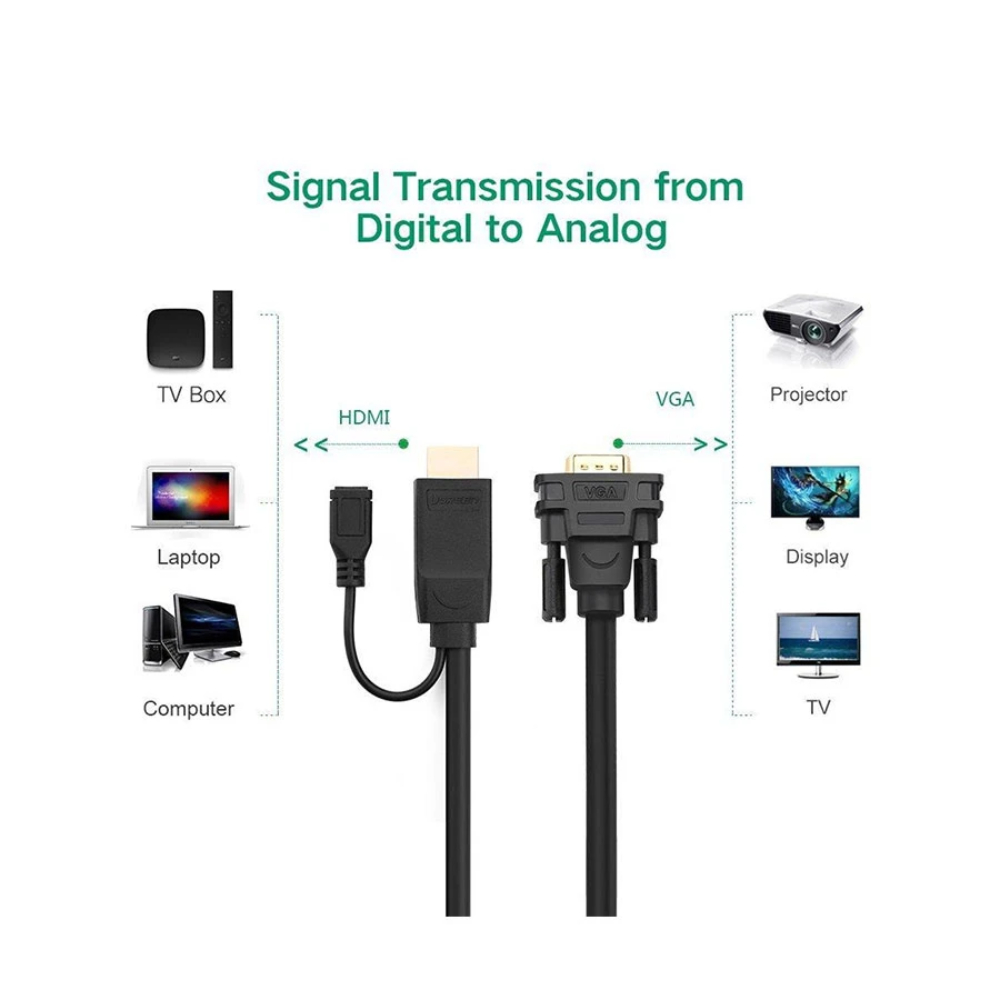 Ugreen MM101/30449 HDMI to VGA Converter Round Cable 1.5m Black