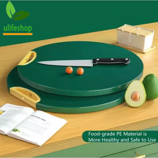 Ulife Plastic Cutting Board Non-Slip Round HDPE Chopping Board for Meat, Vegetable Easy Grip Handle