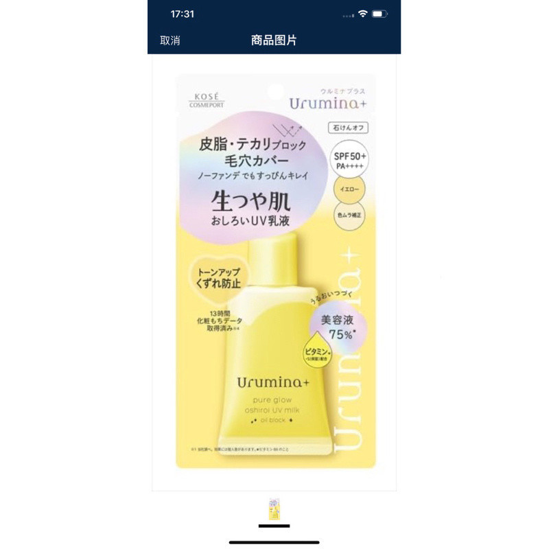 Ulmina Plus Natural Glossy Skin Powder Emulsion Oil Block SPF50 KOSE Cosmeport