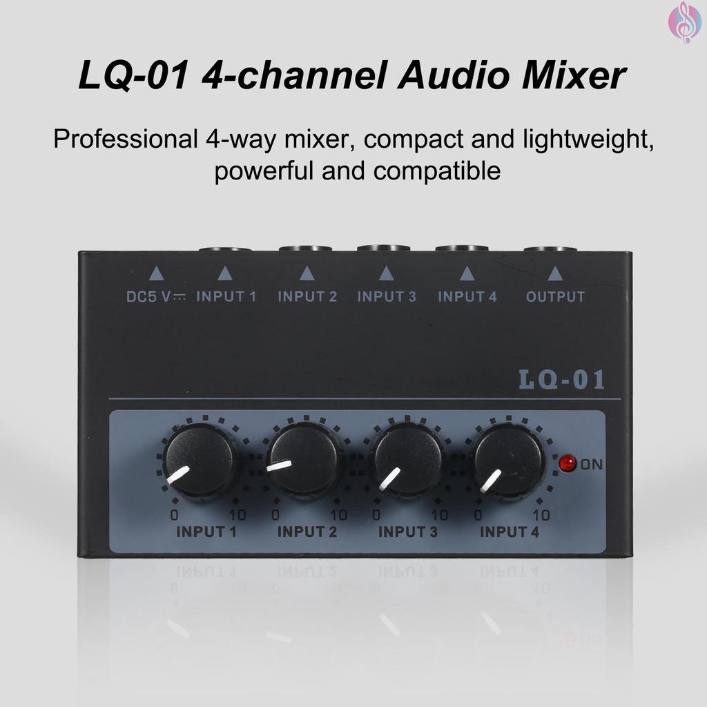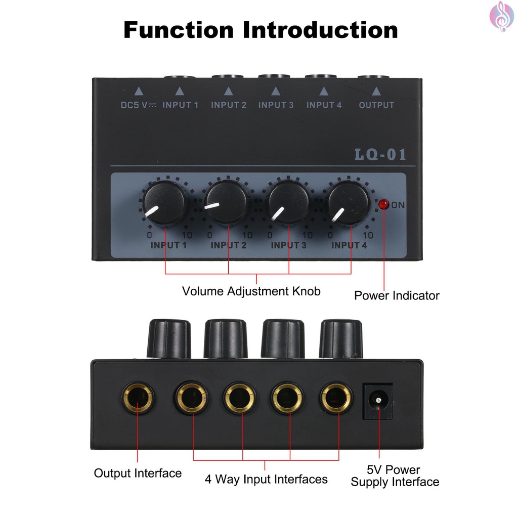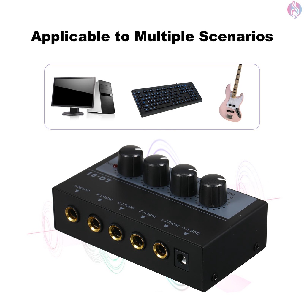 Ultra Low Noise 4 Channel Mixer 4 Input 1 Output DC 5V Portable Mini Audio Mixer Microphone Guitar Bass Keyboard Mixers for Club Bar Stage Studio