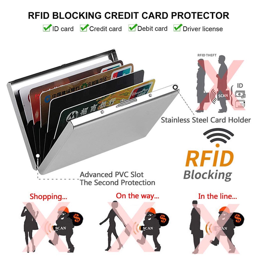 Ultra Thin Credit Card Holder for Men & Women, Stainless Steel Wallet RFID Blocking Slim Metal Case