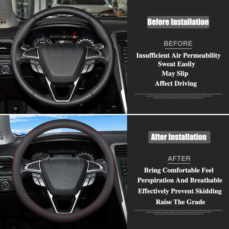 Ultra-Thin Leather For Ford Car Steering Wheel Cover 38cm Kelisa Kancil Kenari Kembara Accessories Ranger Fiesta Focus Everest Mustang Kuga EcoSport Escort Escape Explorer Mondeo