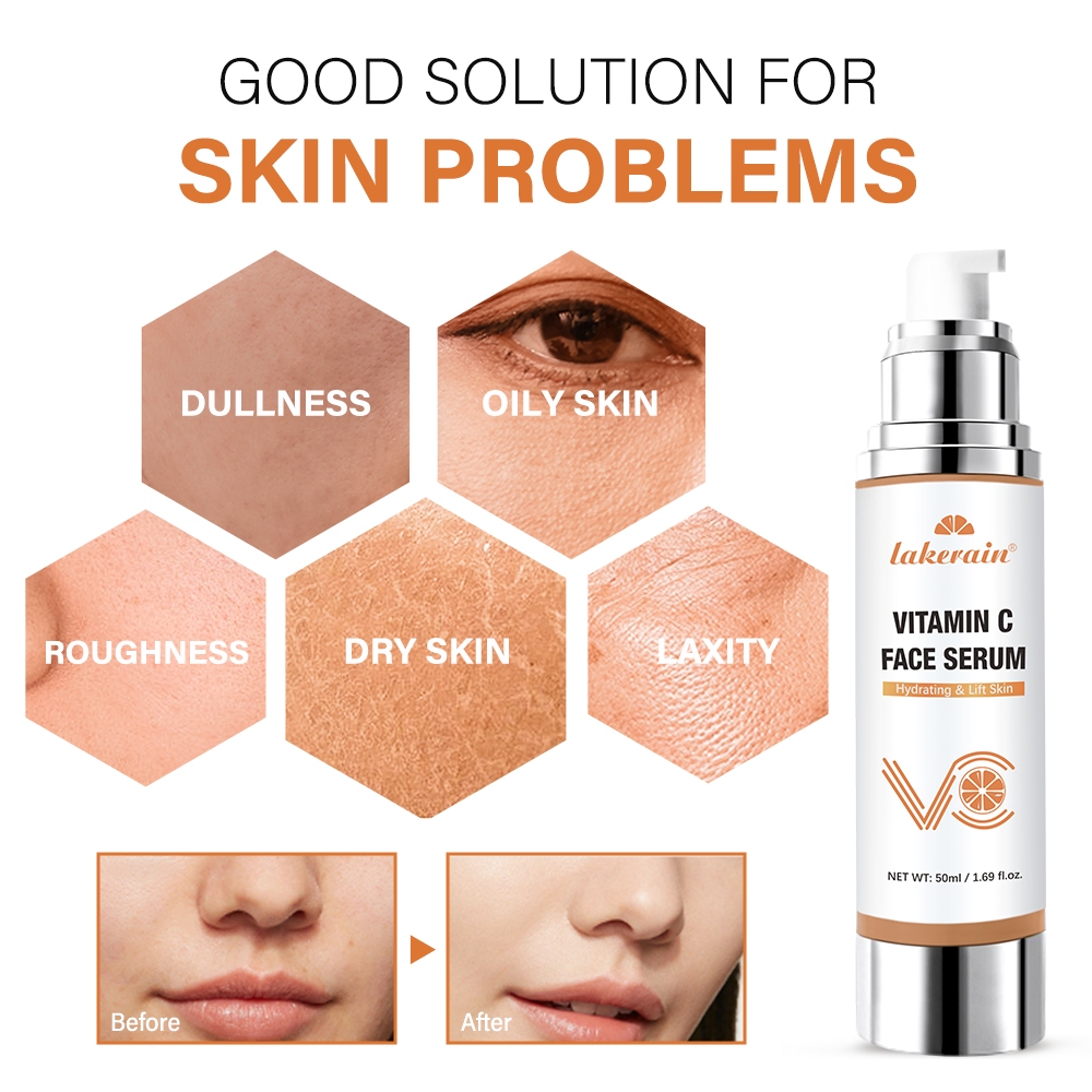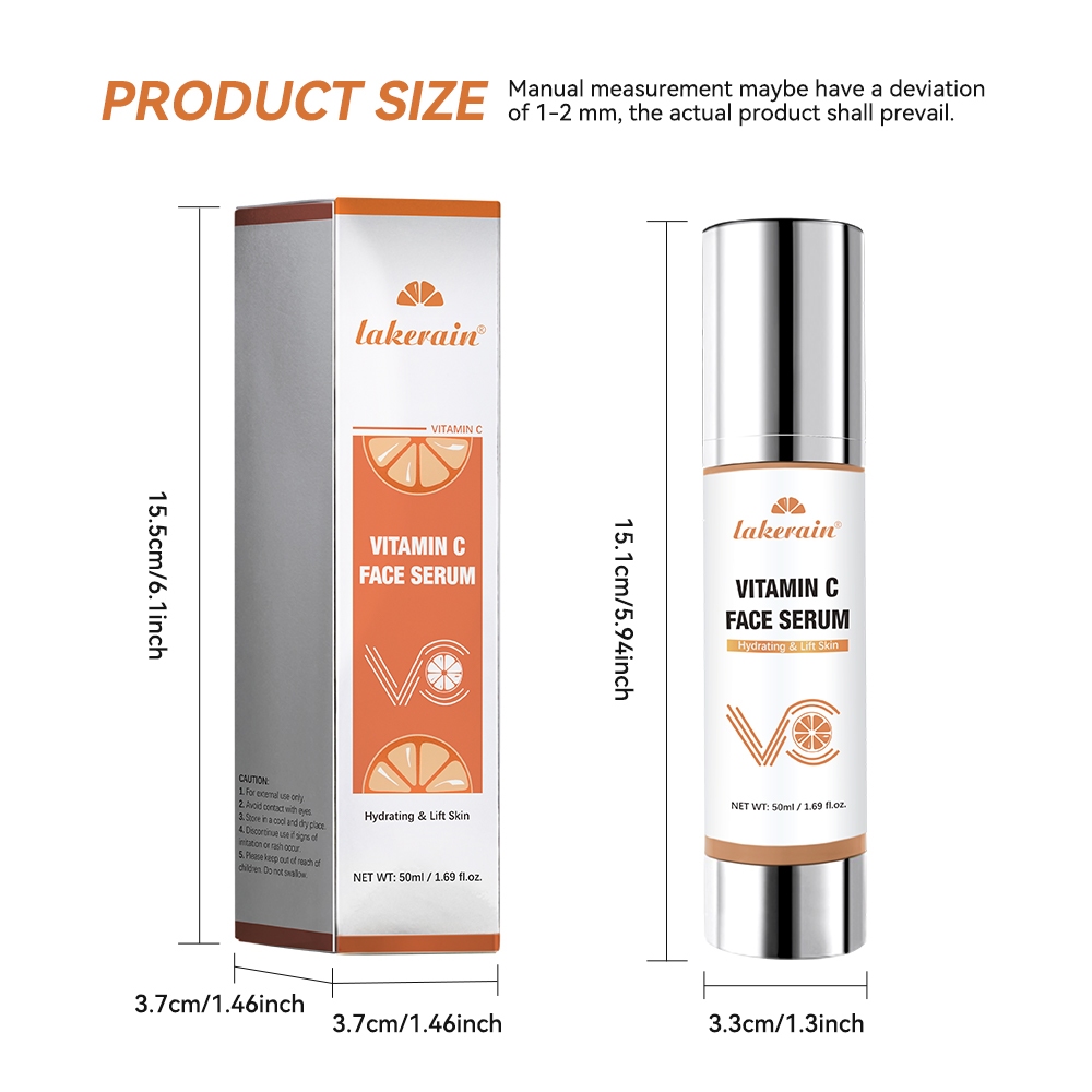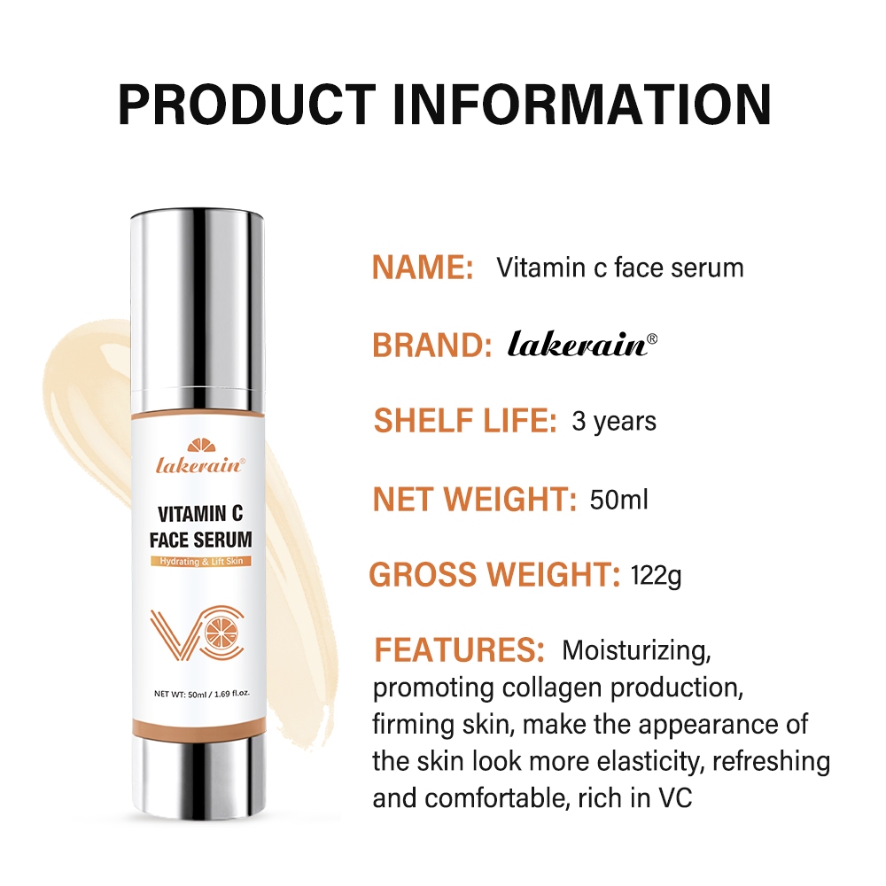 Lakerain 50ml Vitamin C Serum for Face, Dark Spot Remover for Face, Skin Care, Hyaluronic Acid Serum, Targets Age Spots, Hydrates and Wrinkle Reduction