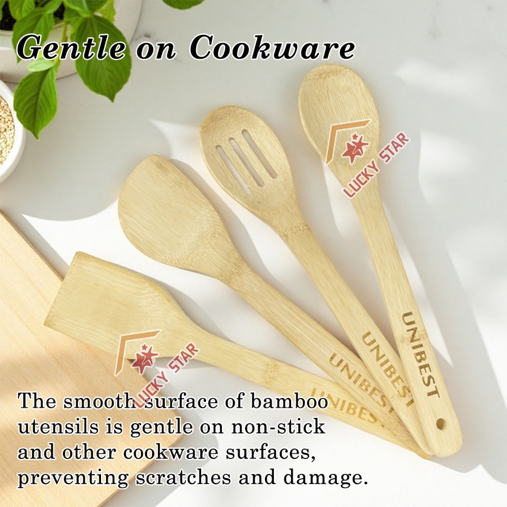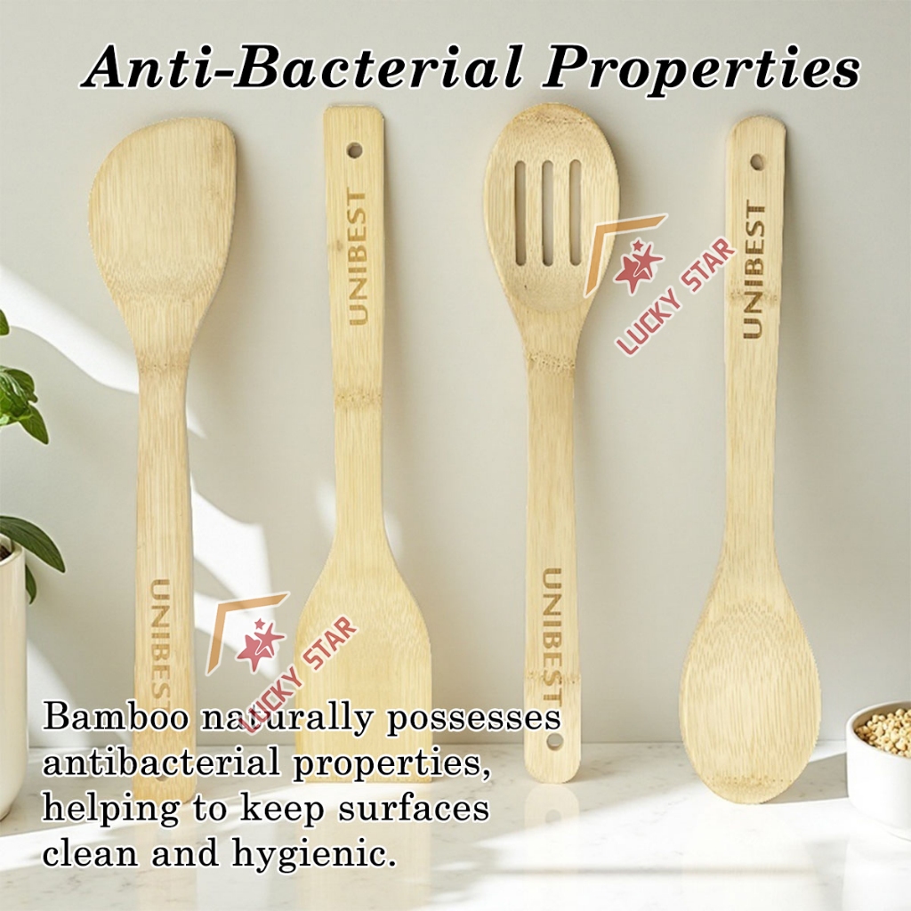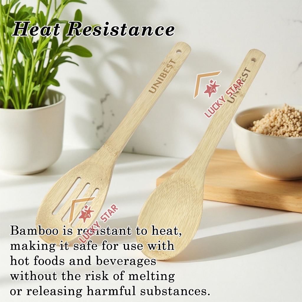 UNIBEST Bamboo Ladles Kitchen Utensils And Cooking Tools Bamboo Spatula Turner Slotted Spoon