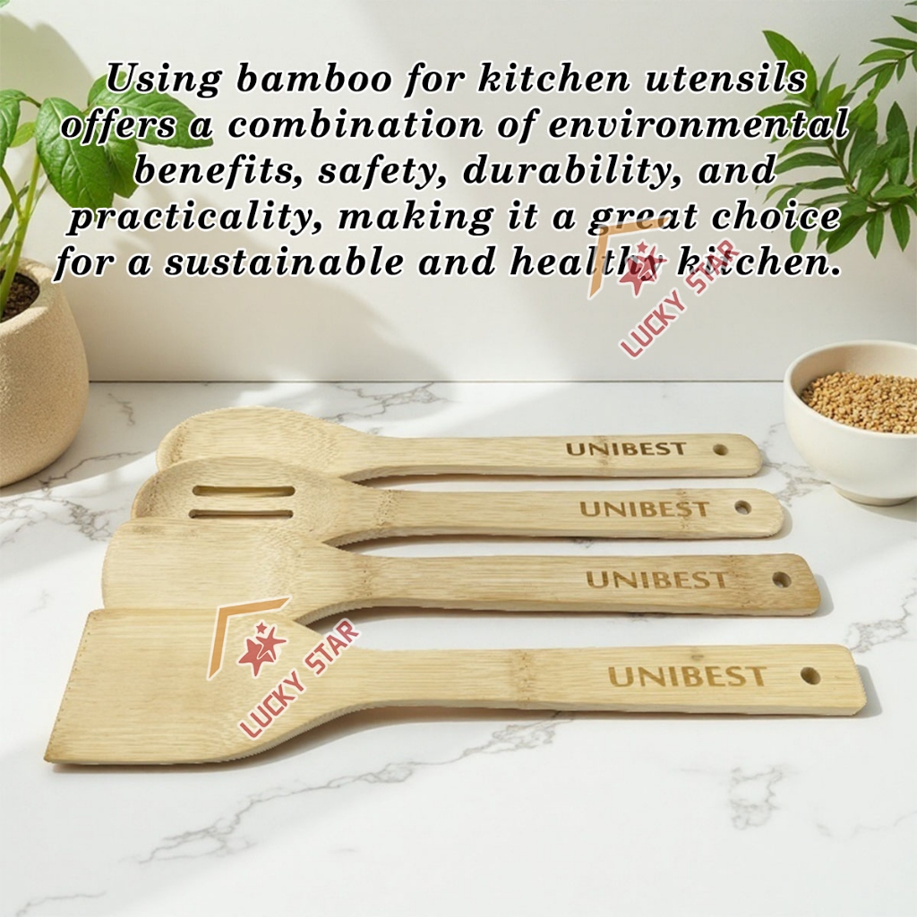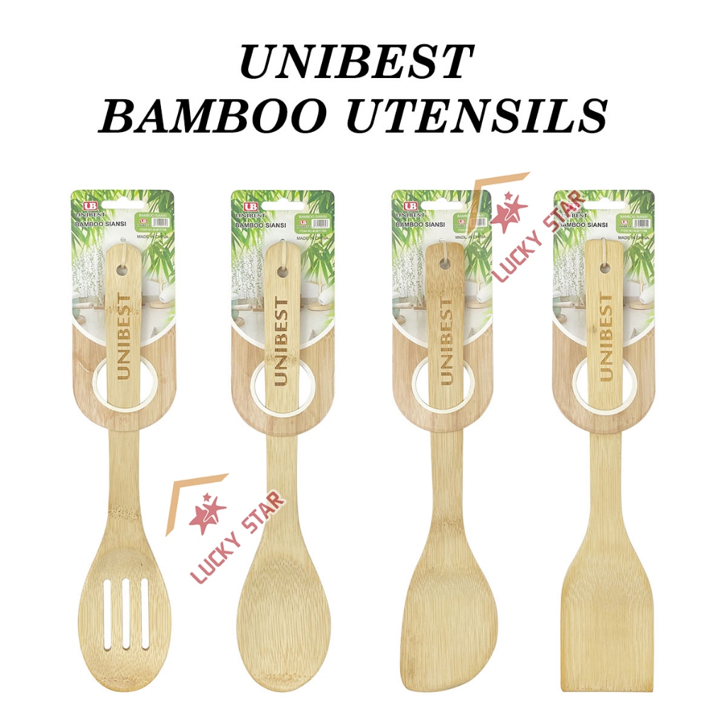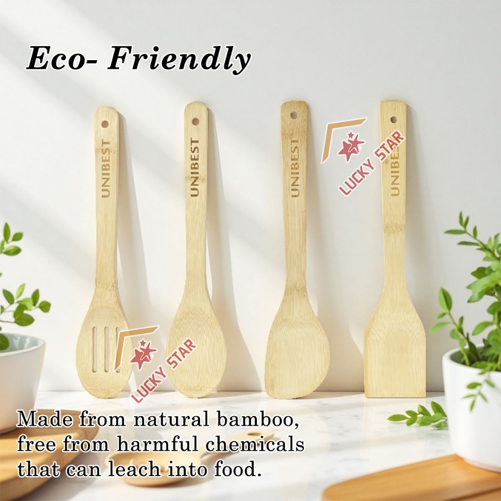 UNIBEST Bamboo Ladles Kitchen Utensils And Cooking Tools Bamboo Spatula Turner Slotted Spoon
