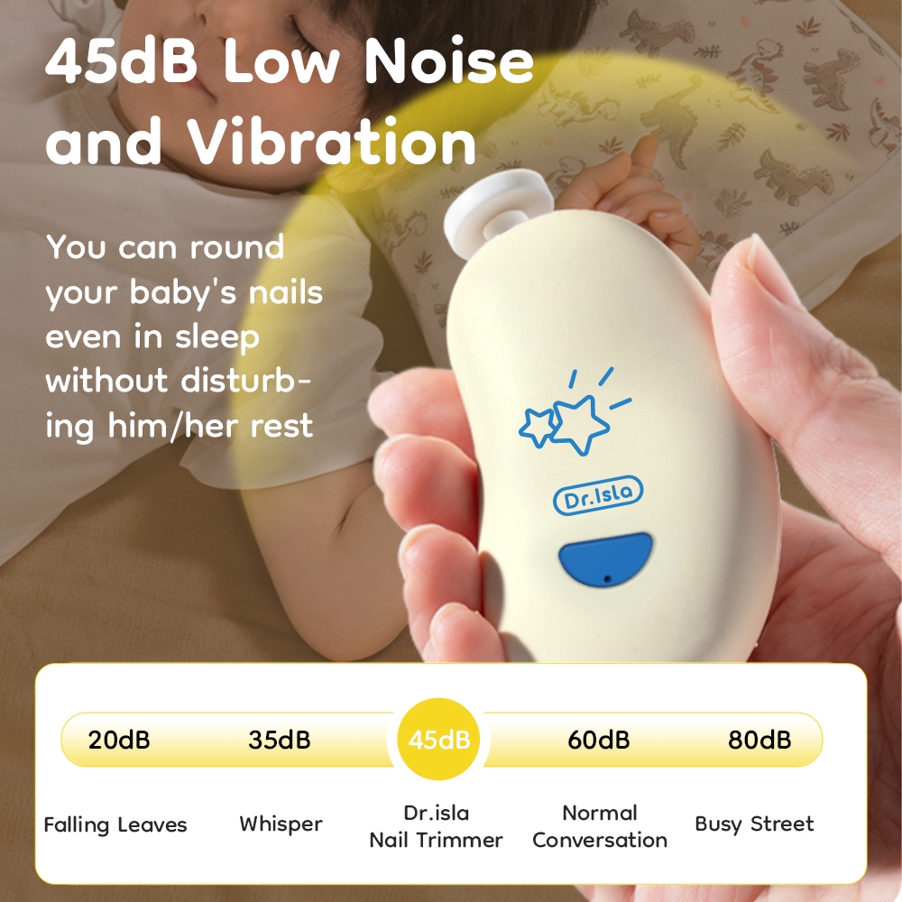 Dr.isla Nail Trimmer For Baby 360° ABS Material Smooth Curve USB Charging Low Noise Safety NG04