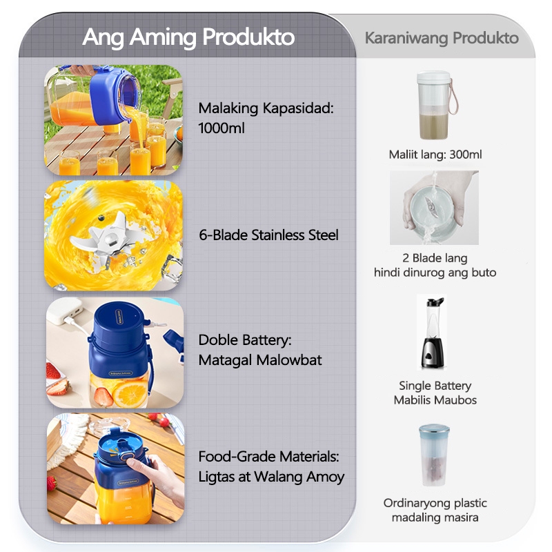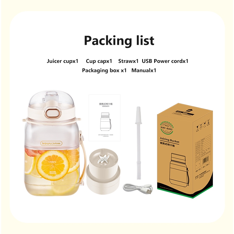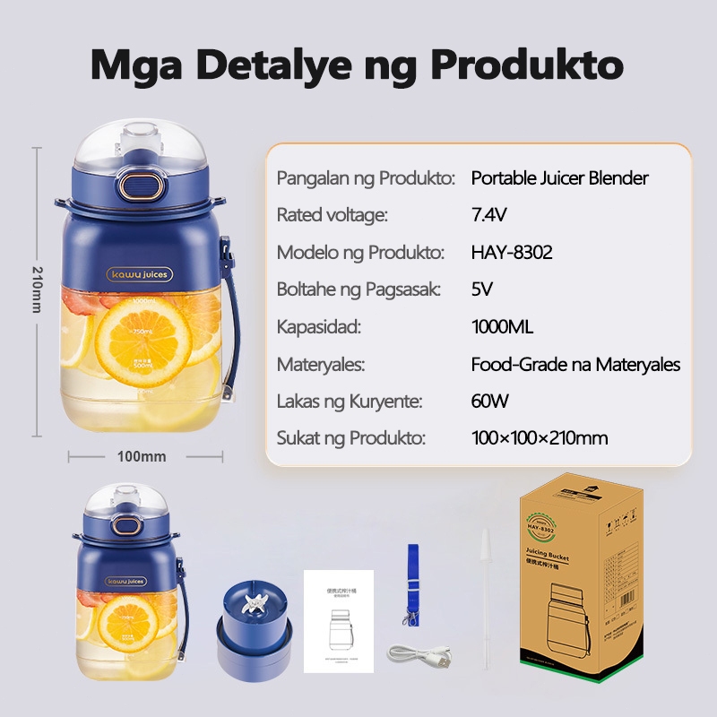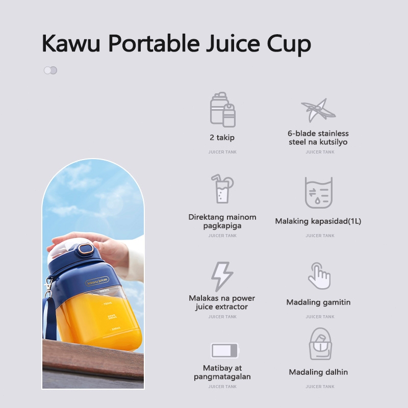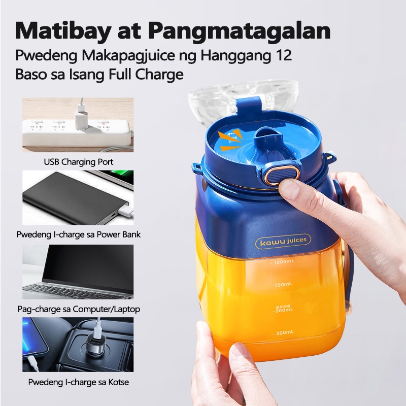 Kawu Portable Blender Tumbler Heavy Duty juicer fruits and vegetables Type-C Charge Ice Smoothie 1L