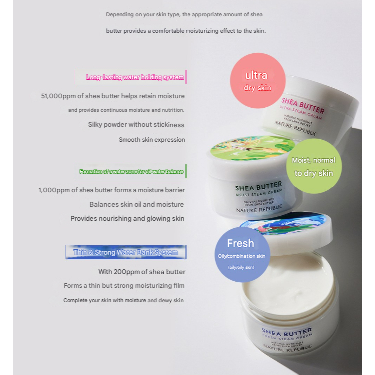[Nature Republic] Shea Butter Steam Cream Collection 100ml (ULTRA/MOIST/FRESH) K Beauty