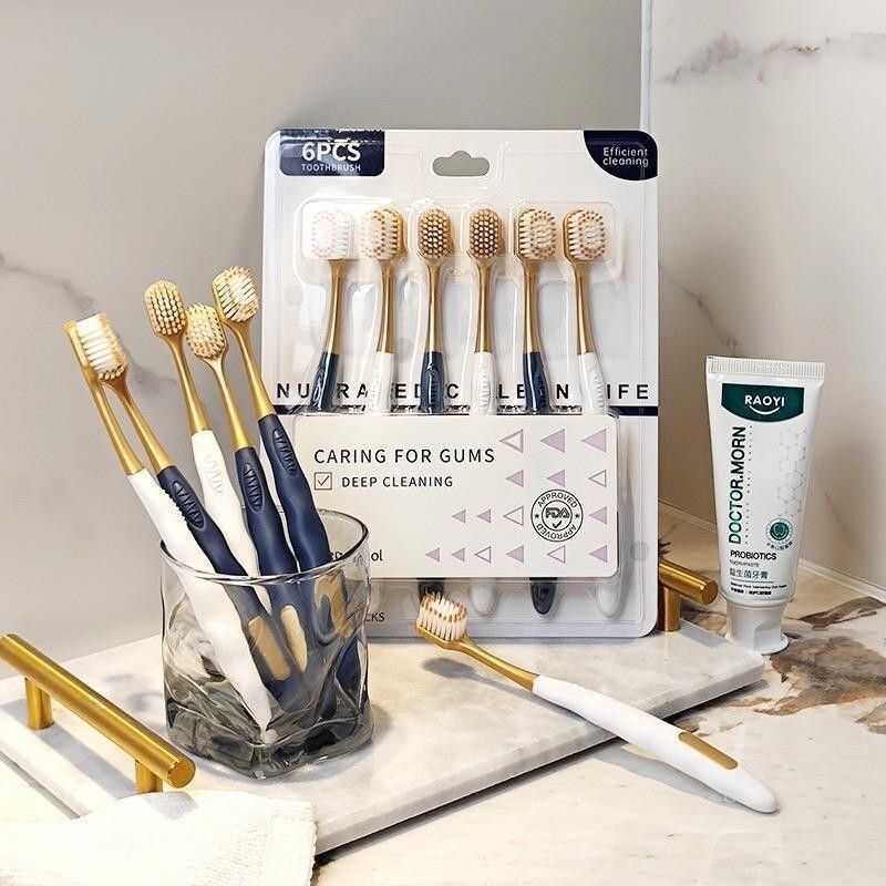 6Pcs Soft Family Pack Deep Cleaning Anti-Bleeding Wide Head Toothbrush 6Ce