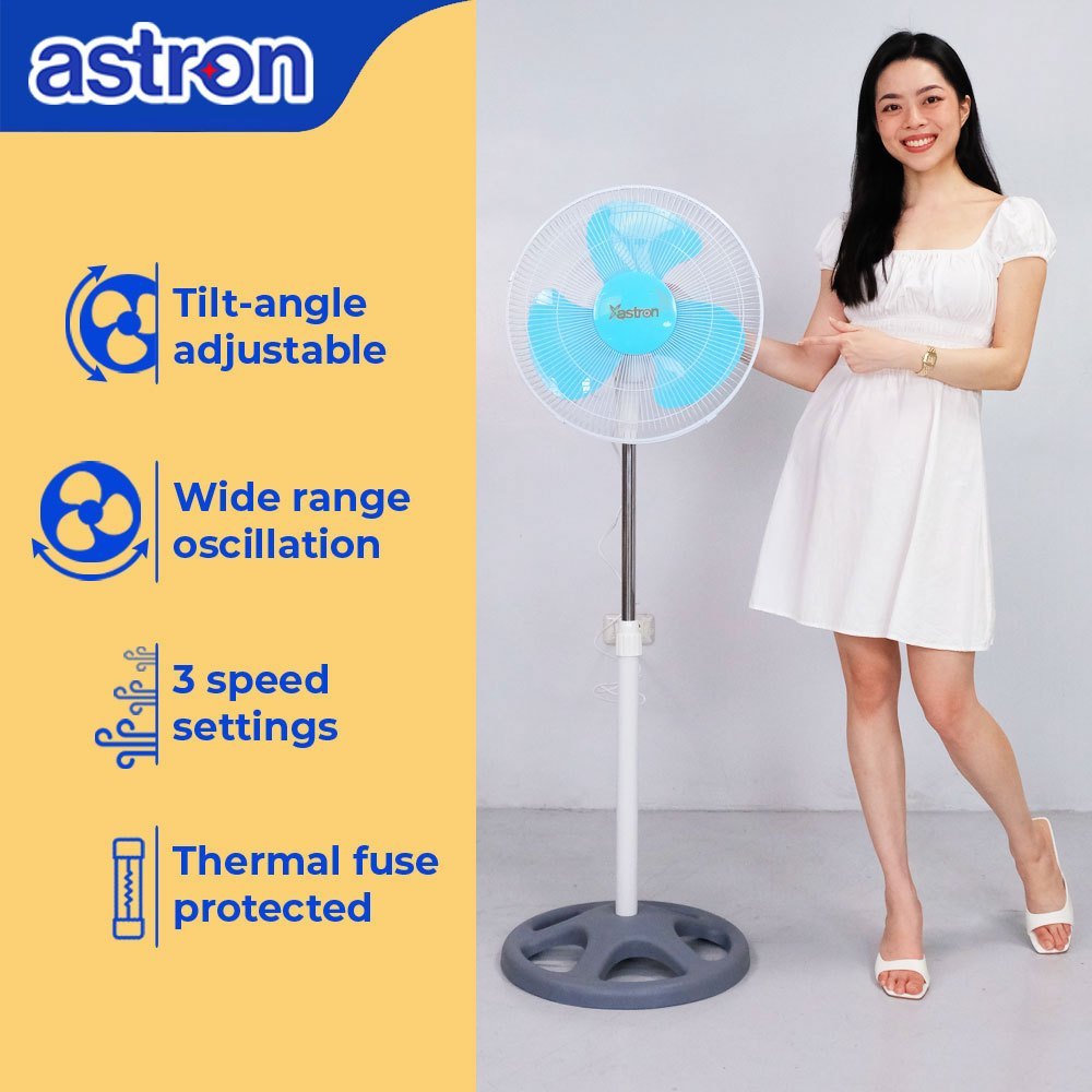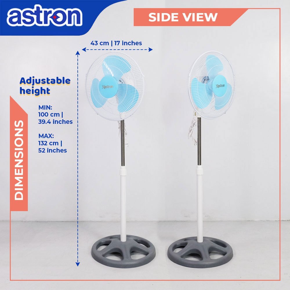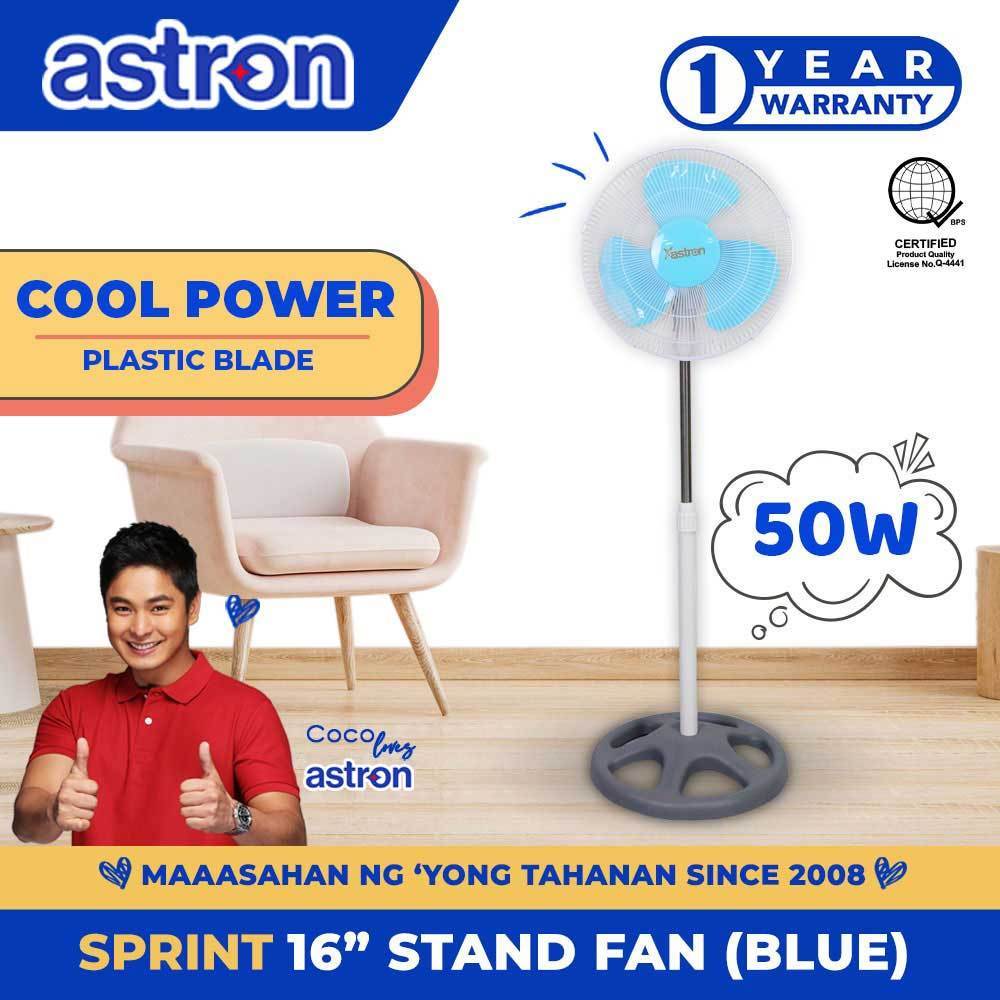 Astron&p+SPRINT?O|16 Electric Stand Fan - Blue | Adjustable Height | 50W |[u[Powerful<mN^Motor