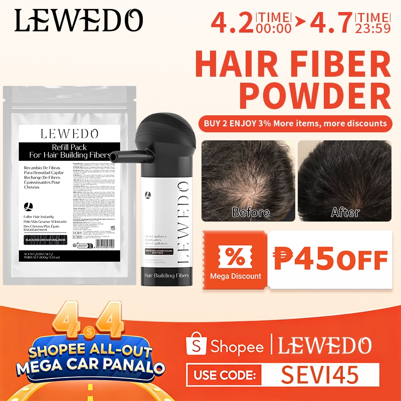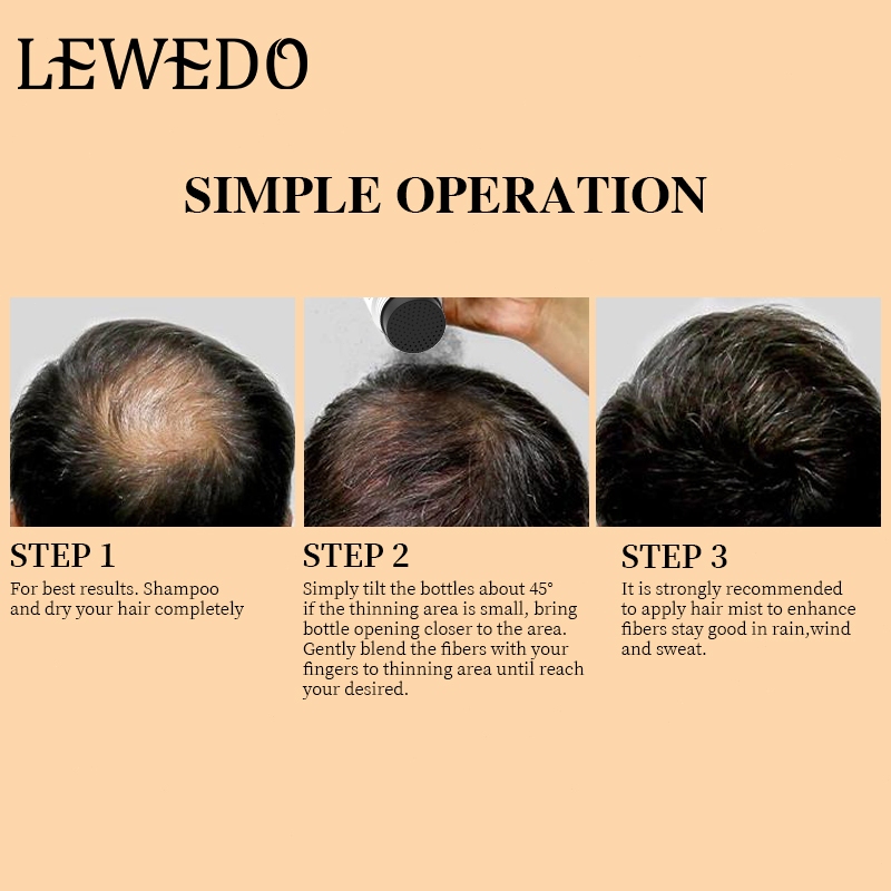 LEWEDO Hair Fiber Powder Invisible Realistic Loss Building Hair Fibers Cover Bald Hairline 25g