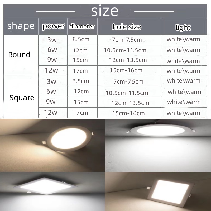 Ultrathin Panel light pinlight LED Downlight Round Ceiling Light Square Ceiling Light Recessed down Light with drive 3W 6W 9W 12w