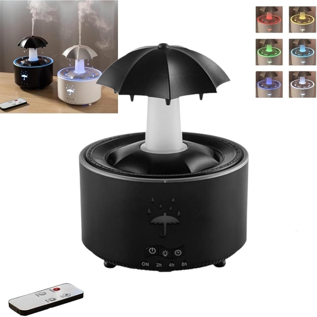 Umbrella Waterfall Humidifier, Umbrella Diffuser with Rain Effect, Rotating Umbrella Drop 7-Color LED, Essential Oil Diffuser Essential Oil Diffuser Aromatherapy