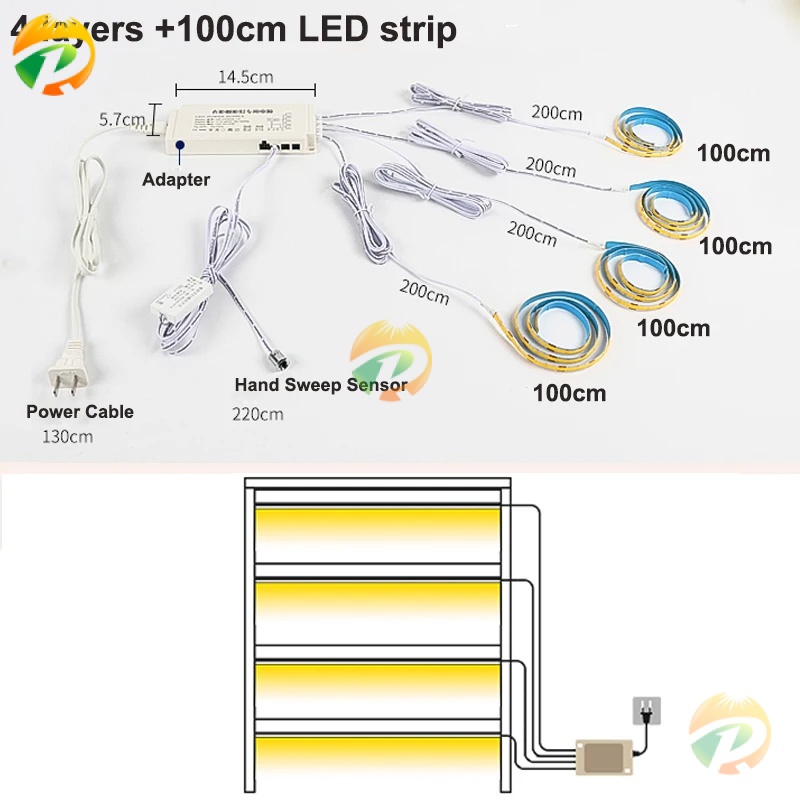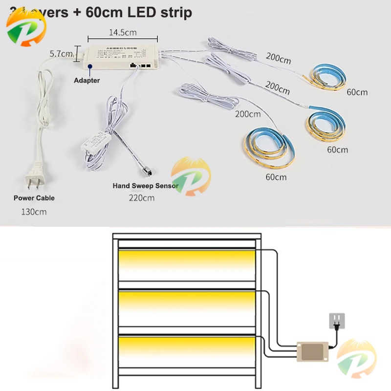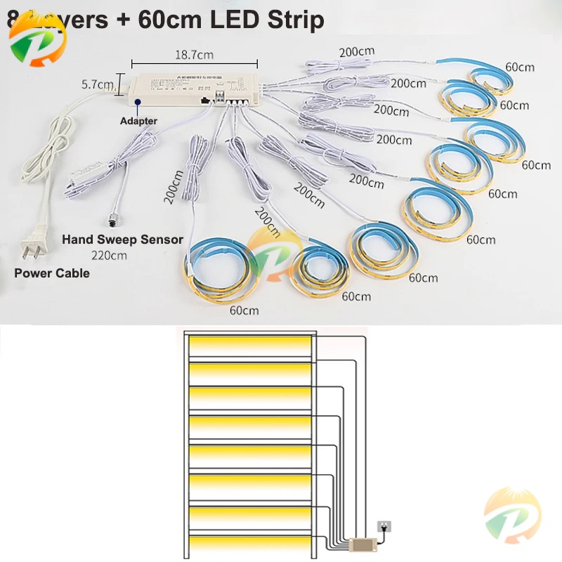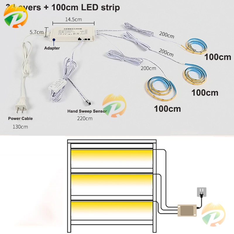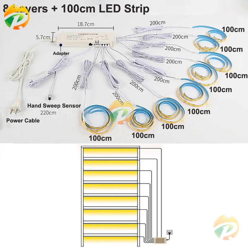 Under Cabinet LED Strip Lights Kitchen Shelf Pantry Showcase Bedroom Wardrobe Closet Backlight Lamp Hand Sweep 3M Sticker