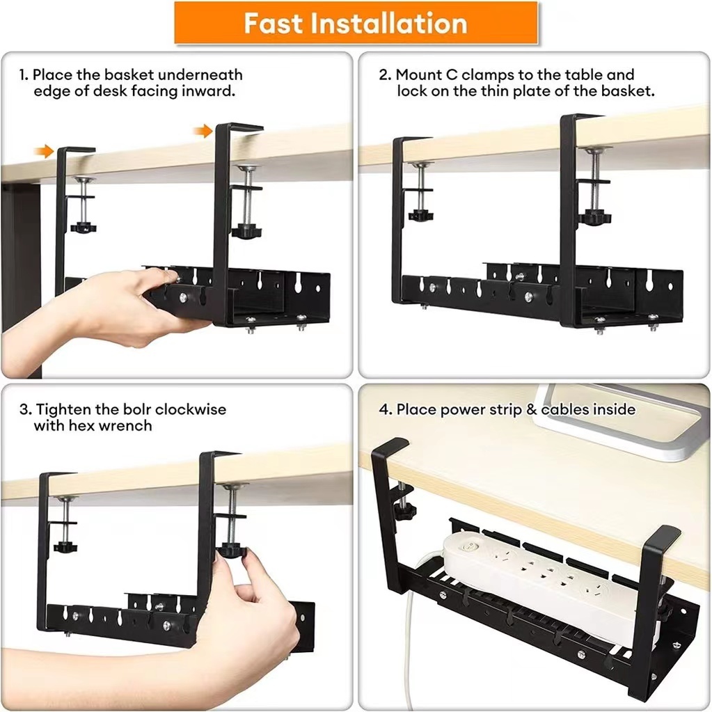 Under Desk Cable Management Tray Adjustable Length Desk Socket Table Flexible Holder Wire Organizer