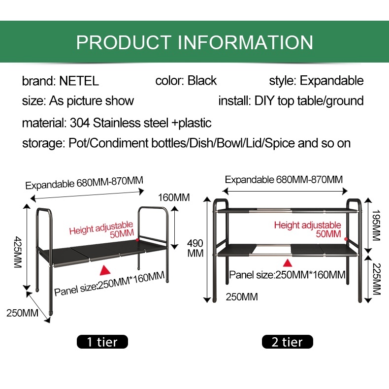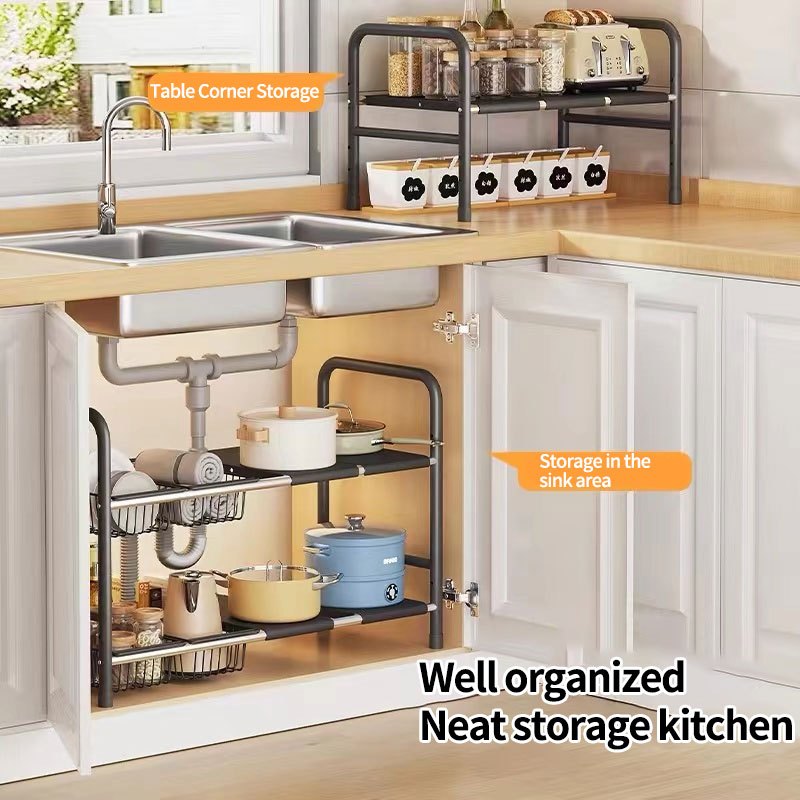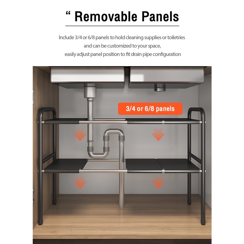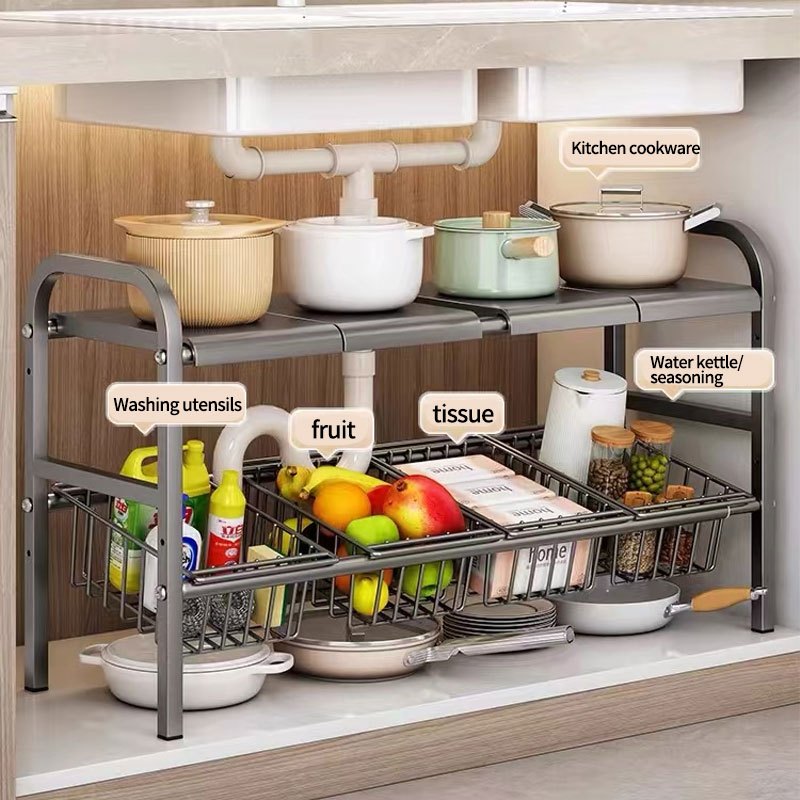 Under Sink Organizer Rack Adjustable Kitchen Storage Rack 2 tier Expandable Shelf Rack Under Sink