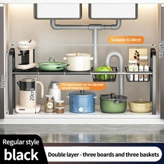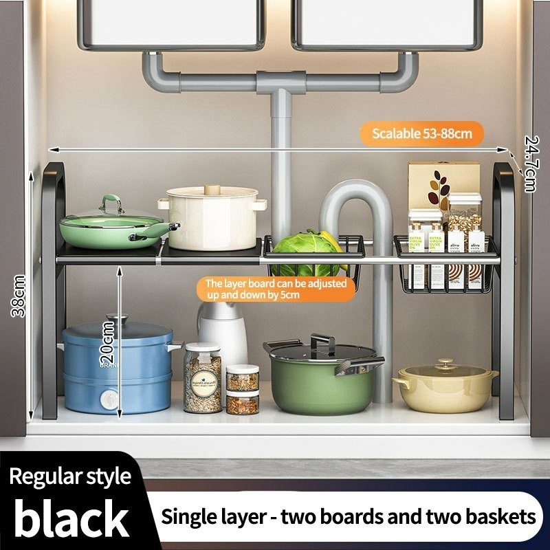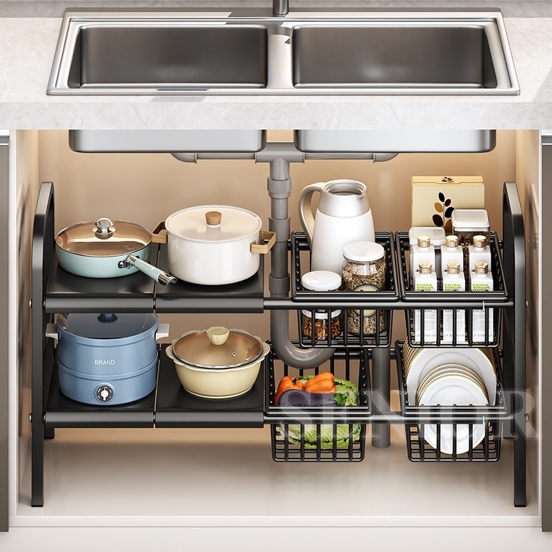 Under Sink Organizer Rack Adjustable Kitchen Storage Rack 2 tier Expandable Shelf Rack Under Sink