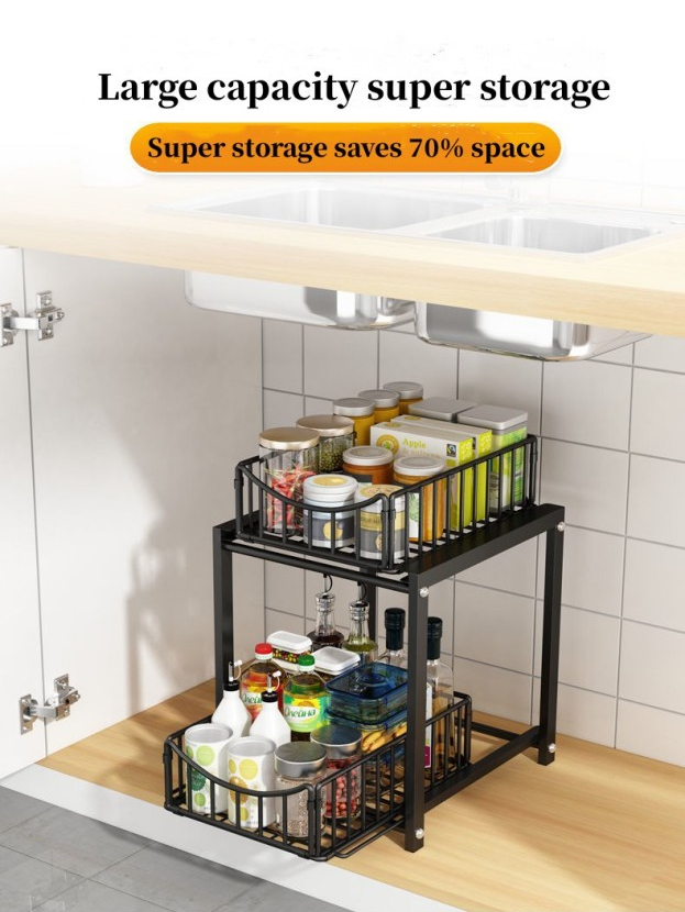 Under Sink Rack Kitchen Full Steel Sliding Cabinet Rak Dapur Basket Pull Out Organizer Drawer Pantry