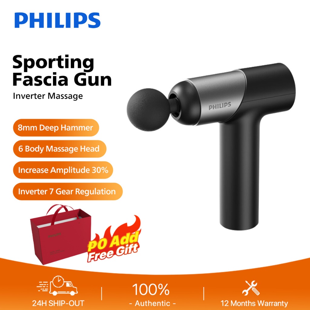 Philips Massage Gun Electronic Massager Vibration Fascial Gun Muscle Relaxation 3 & 6 Massage Heads