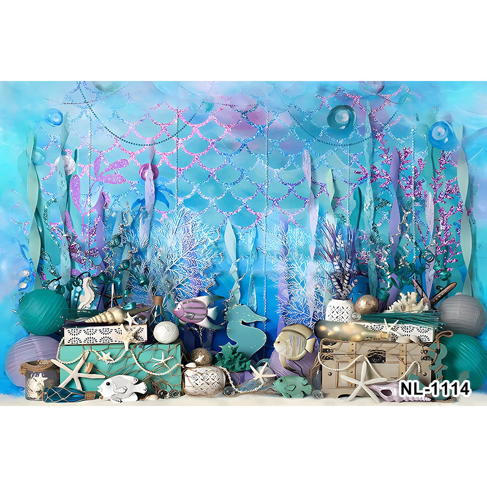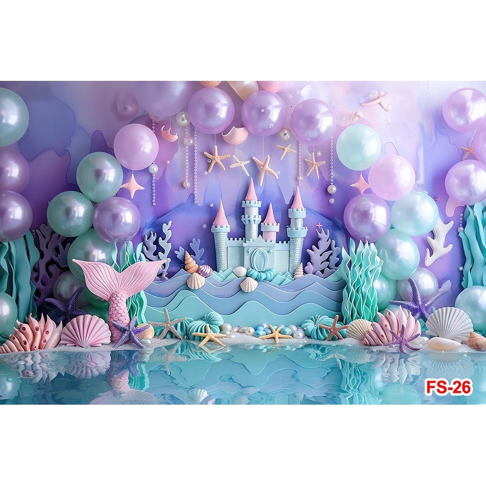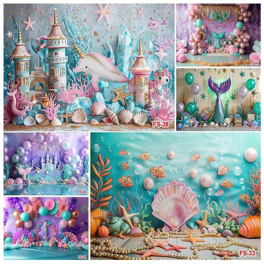 Under The Sea Backdrop for Photography Mermaid Princess Birthday Party Background Castle Kids Girl Theme Birthday Photo Backdrop
