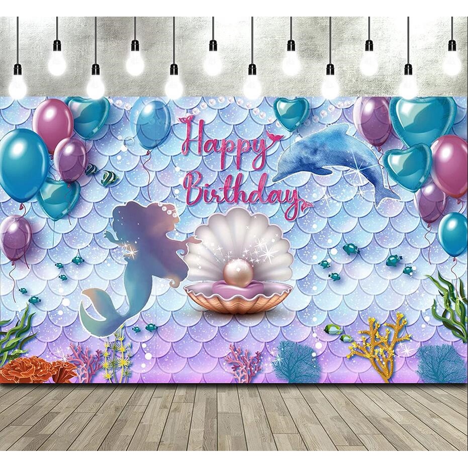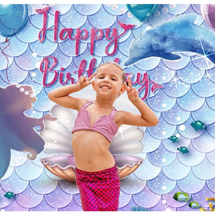 Under The Sea Mermaid Birthday Party Backdrop Girl Princess Mermaid Scales Birthday Backdrop Purple Blue Mermaid Pearl Whale Background Banner for Birthday Party Decor 7X5ft
