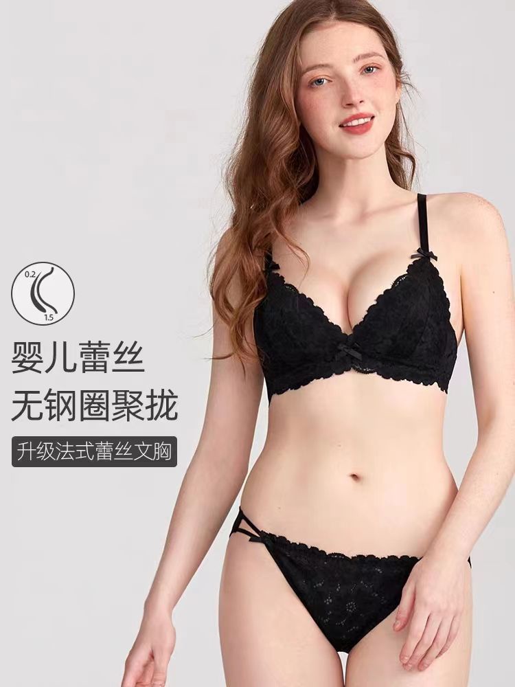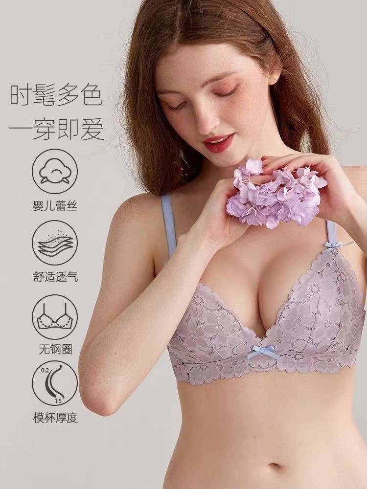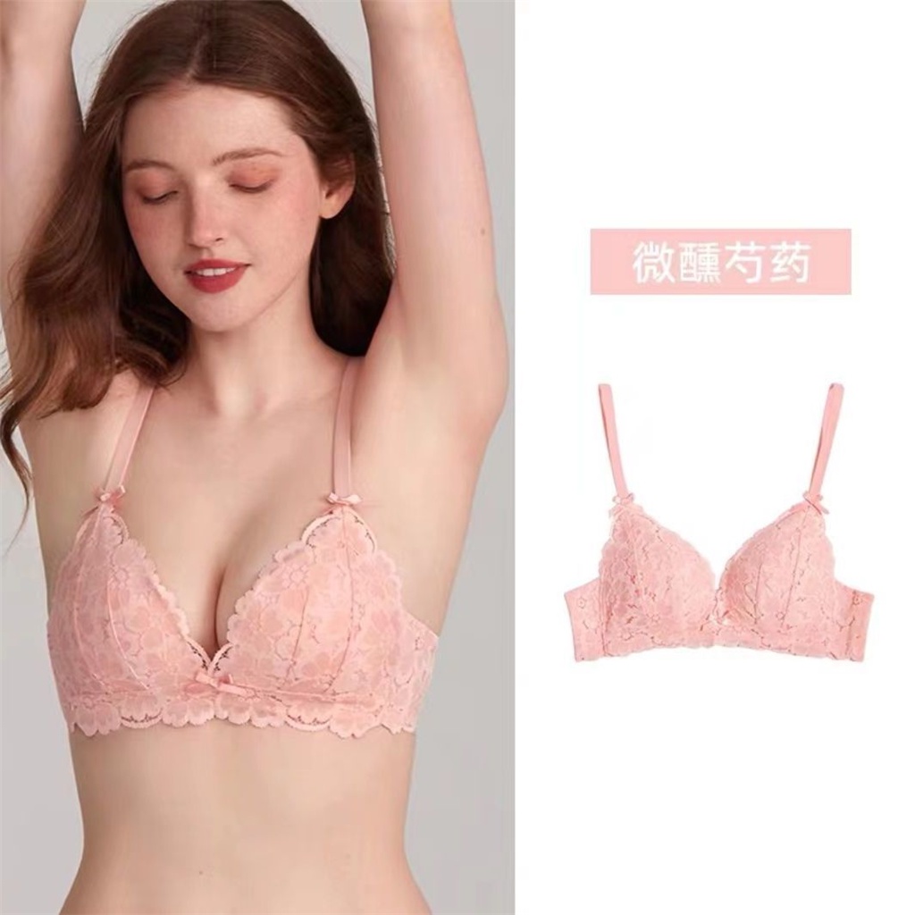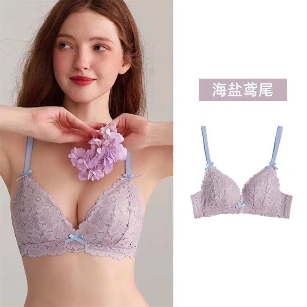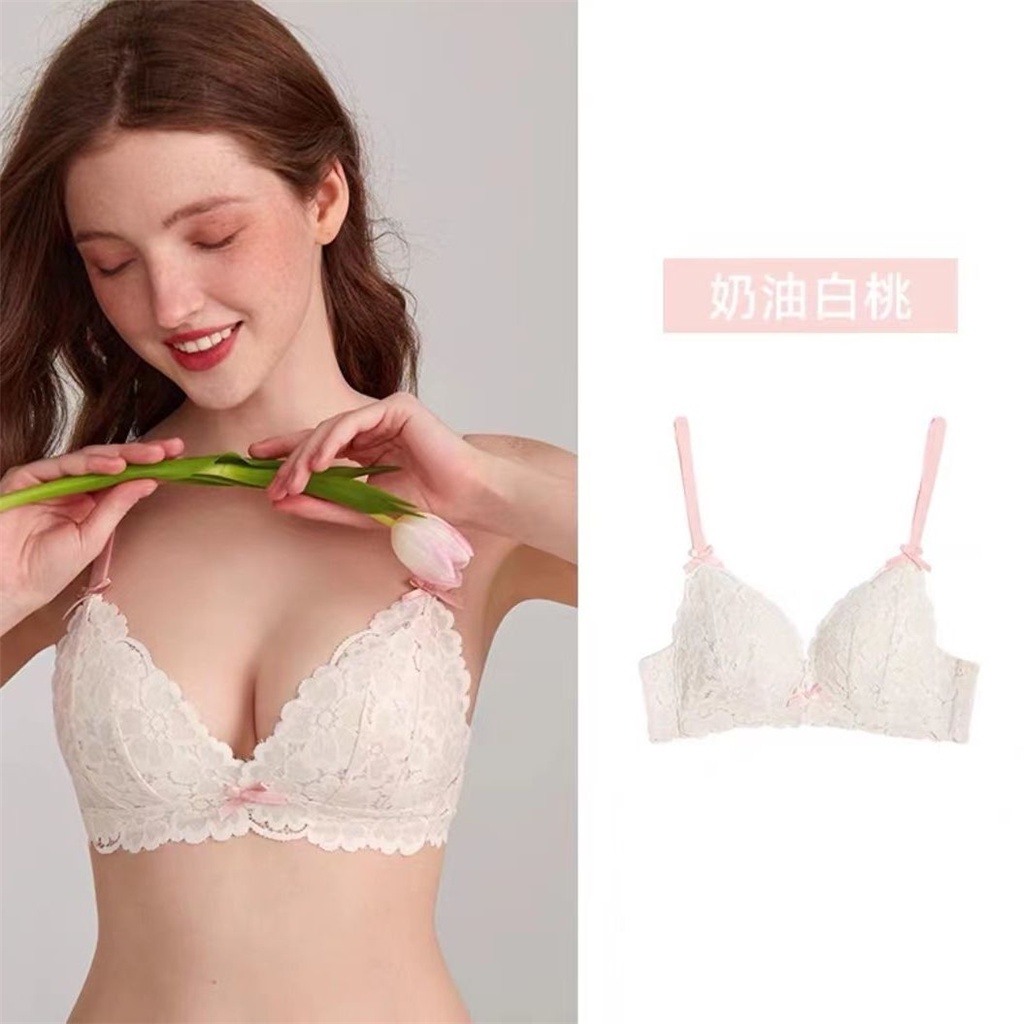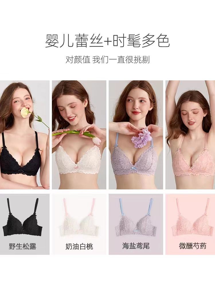 Underwear Women Cute Lolita Japanese Style Pure Desire Style Lace Triangle Cup French Small Breasts Gathered Sexy Comfortable Bra